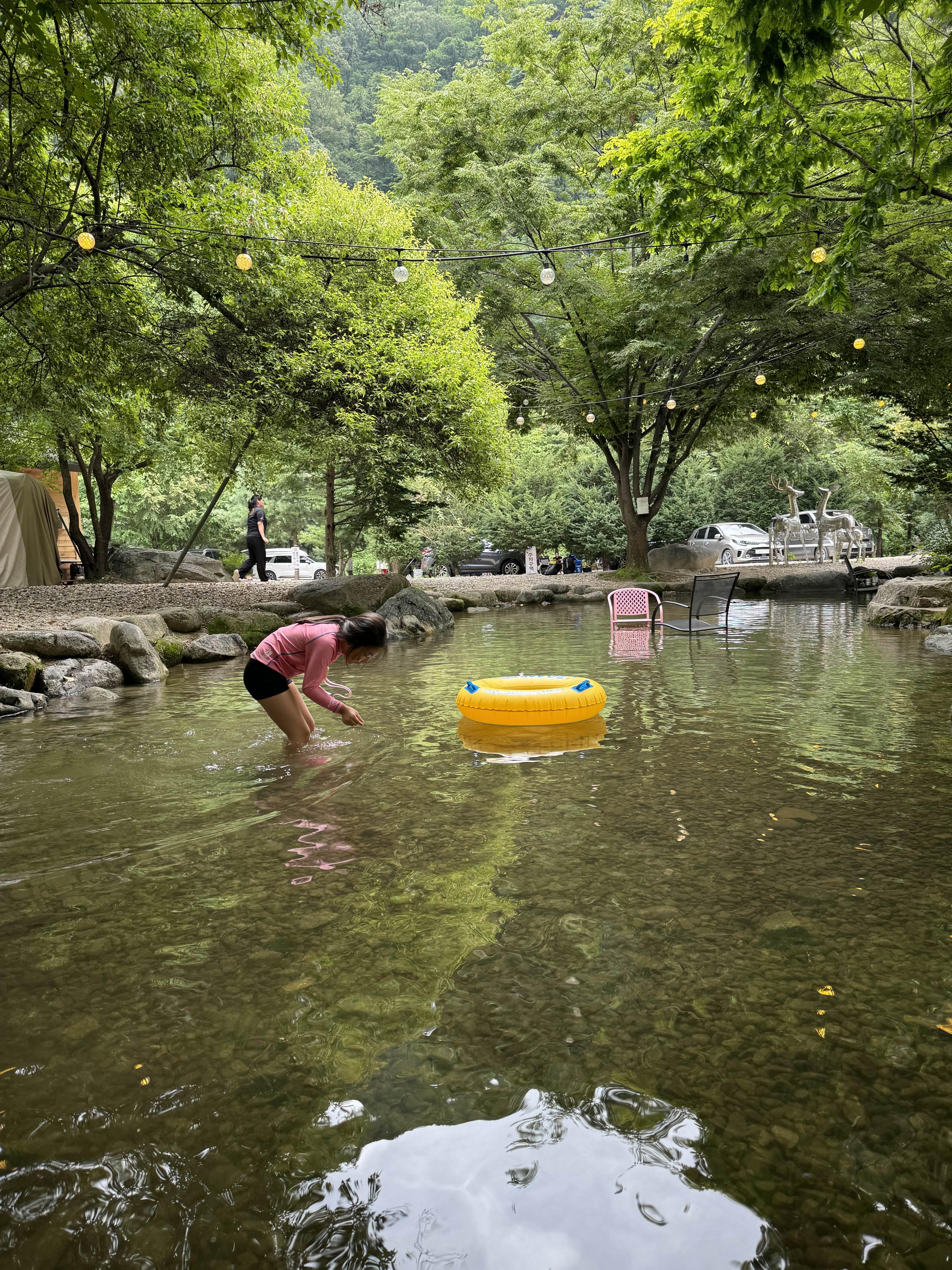 계곡 물살이 세지 않고 깊이도 적당해 초등학생, 유치원생도 즐겁게 다녀온 계곡 캠핑장이었습니다.