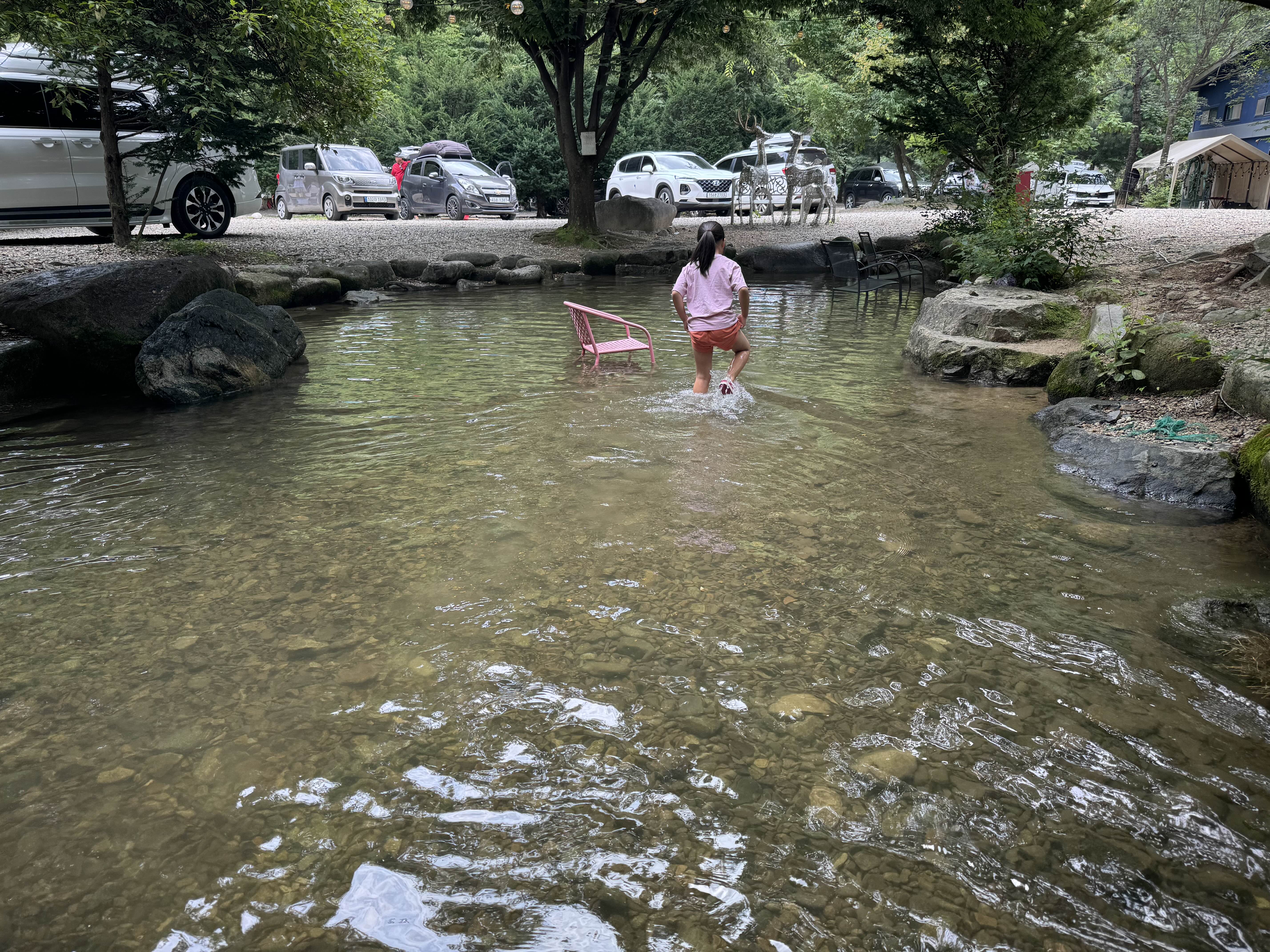 계곡 물살이 세지 않고 깊이도 적당해 초등학생, 유치원생도 즐겁게 다녀온 계곡 캠핑장이었습니다.