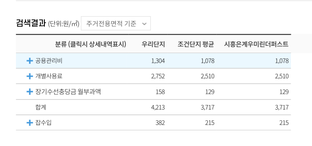관리비 비교 분석