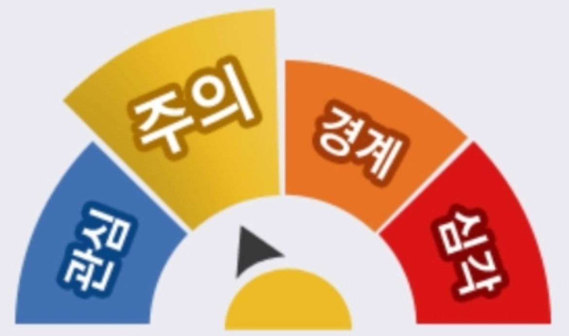 사회재난 위기경보는 테러, 대규모 감염병 발생 등 사회적 혼란을 야기할 수 있는 상황에 발령됩니다. 이 역시 '관심', '주의', '경계', '심각'의 4단계로 구분됩니다.