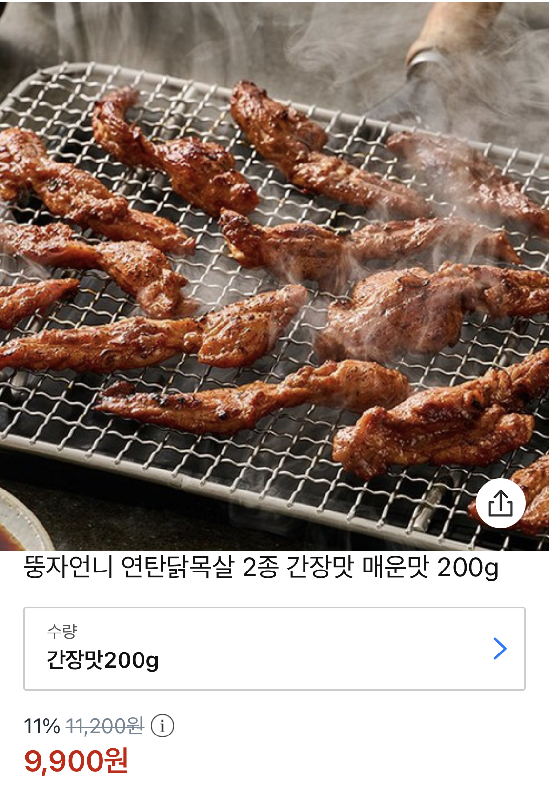 제가 구입한 닭목살 구이는 간장맛과 매운맛이 있었습니다. 저는 아이들과 함께 먹을꺼라 간장맛으로 2봉 구매했구요. 한봉지에 200g이니 간단히 안주로 먹기에도 적당한 양인 듯 합니다.