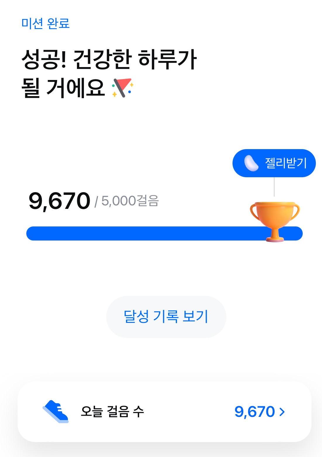 젤리 챌린지에서 걷기를 선택하고 매일 5000보 이상 걷고 젤리 받기을 클릭하면 됩니다