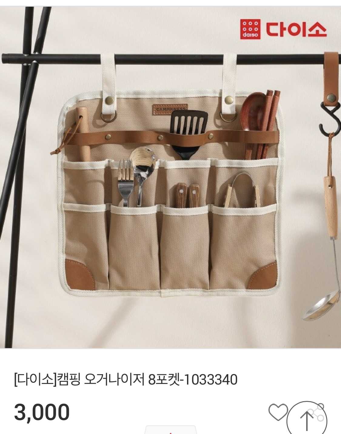 조리도구를 정리하여 행어에 걸쳐놓을 수 있는 오거나이저 입니다. 3천원이라니 너무 괜찮지 않나요??