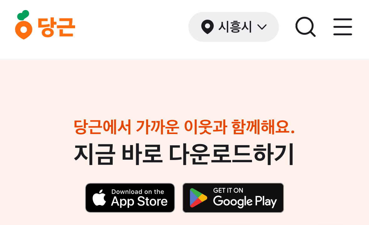 중고거래 앱으로 유명한 당근마켓의 앱을 설치하면 주민들이 참여하여 만든 근처 붕어빵 지도를 볼 수 있습니다. 당근마켓을 아직 설치하지 않으셨다면 먼저 당근마켓 앱부터 설치해 주세요. 앱은 구글 플레이스토어나 애플 앱스토어에서 무료로 다운로드할 수 있는데, 아래의 이미지를 클릭하면 설치페이지로 바로 이동 가능합니다.