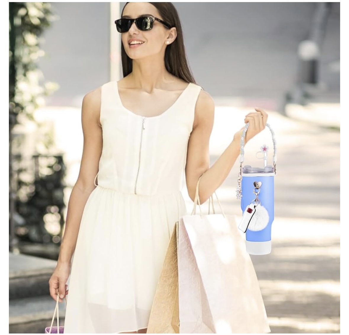 Mity rain 스탠리 컵 전용 액세사리 풀세트입니다. 물병 손잡이 스트랩, 챕스틱 홀더, Siliocne 컵 부츠, 빨대 토퍼 커버, 물병 참이 모두 포함되어 있으며 식기세척기 사용도 가능해 위생적으로 관리할 수 있습니다.