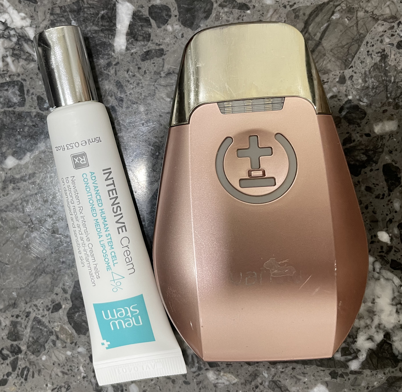집에 예전부터 바나브가 있어 사용하였지만 화장품의 흡수를 도와줄 수 있는 디바이스는 모두 가능할 것으로 생각됩니다. 제가 사용하고 있는 바나브 갈바닉은 가벼운 무게로 휴대용으로도 사용이 편한 갈바닉 기기입니다. 뉴스템 인텐시브 크림은 강한 자극을  받아 빠르게 진정이 필요한 피부나 예민해진 피부에 사용하면 빠른 진정과 재생효과가 있는 재생크림입니다.