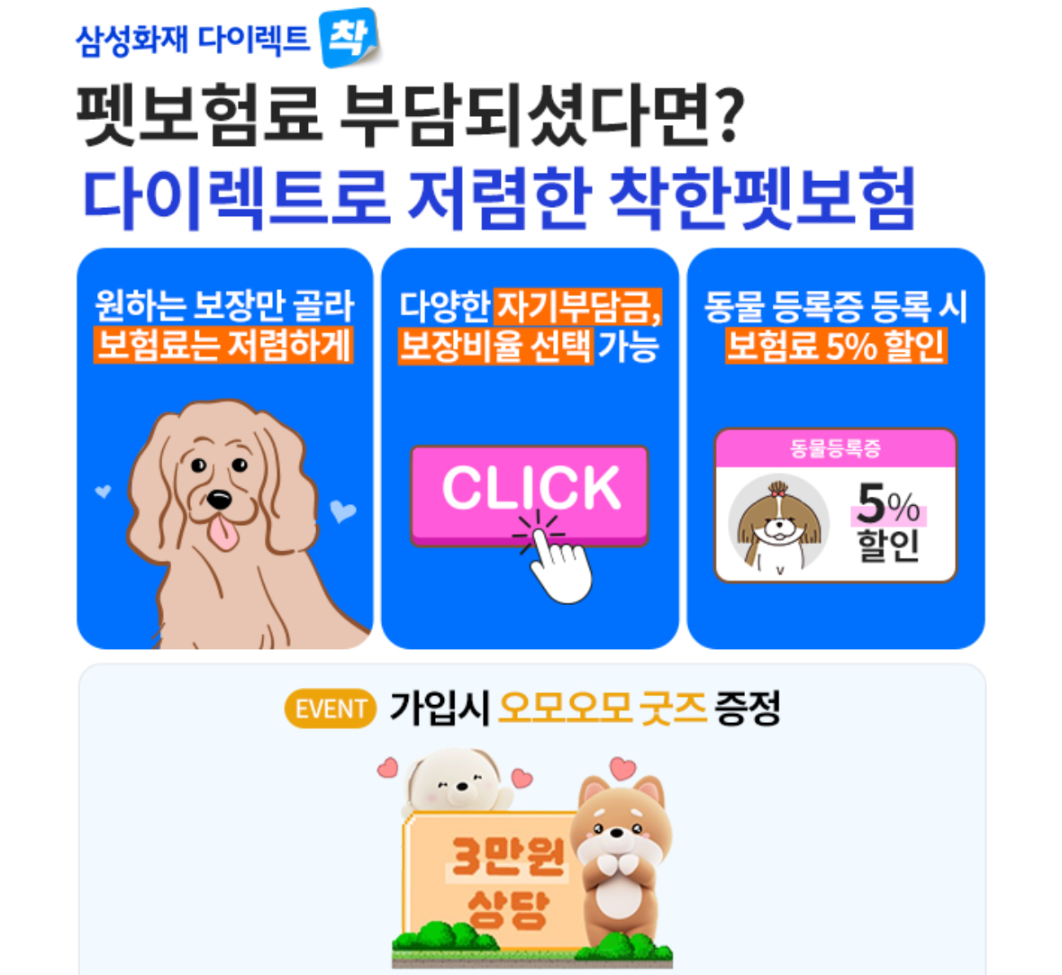 아토피 전문치료제 보장과 더불어 높은 배상 책임 한도를 가지고 있습니다. 삼성화재 펫보험 가입 시 3만 원 상당의