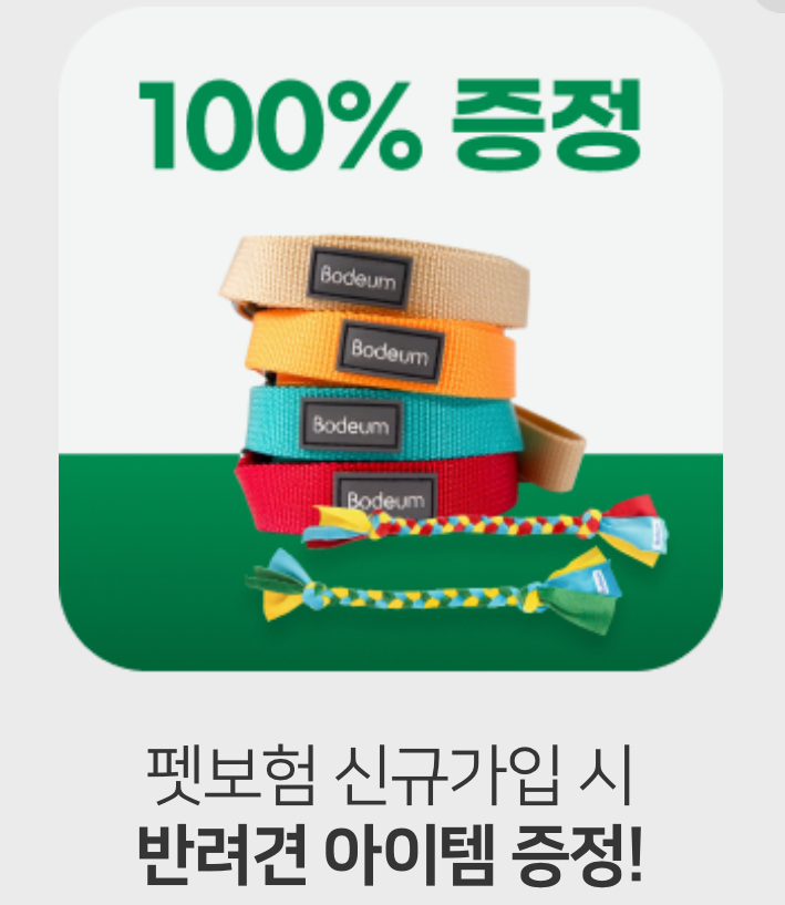 연간 보상한도와 수술비 보상한도가 높으며, MRI/CT 검사비를 별도로 보장하는 특징이 있습니다. 펫보험 가입 시 반려견 아이템 100% 증정 이벤트가 진행 중입니다.