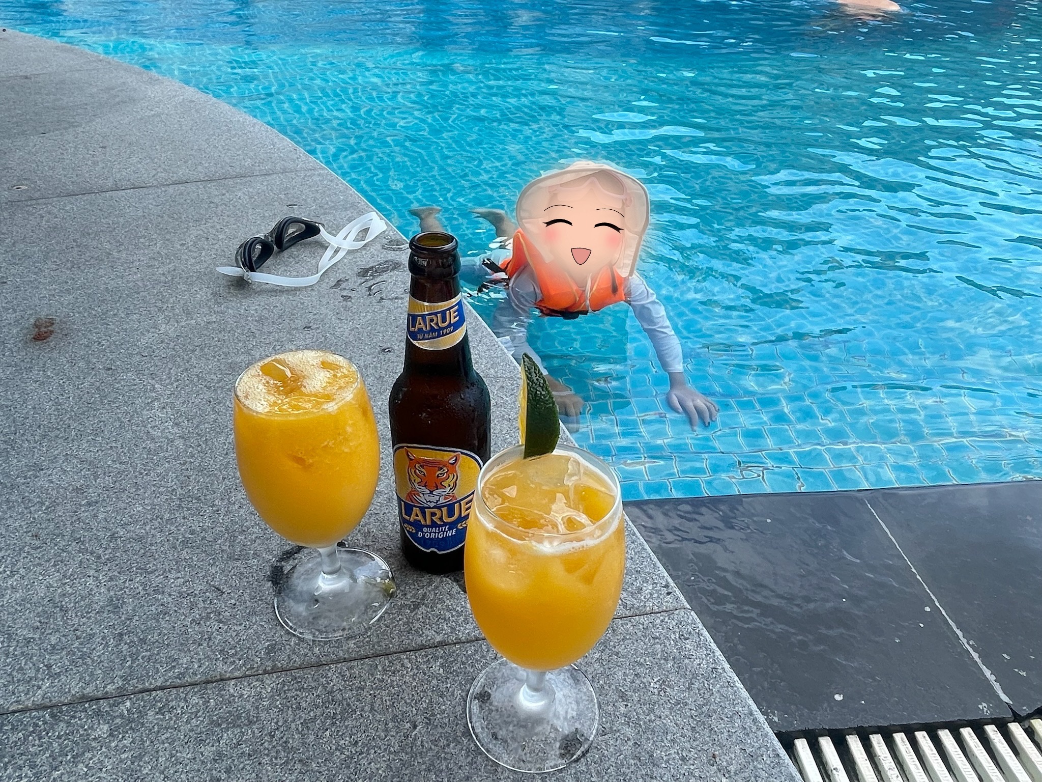 조식 먹고 메인풀에서 수영하면서 맥주와 쥬스도 주문해보았습니다.