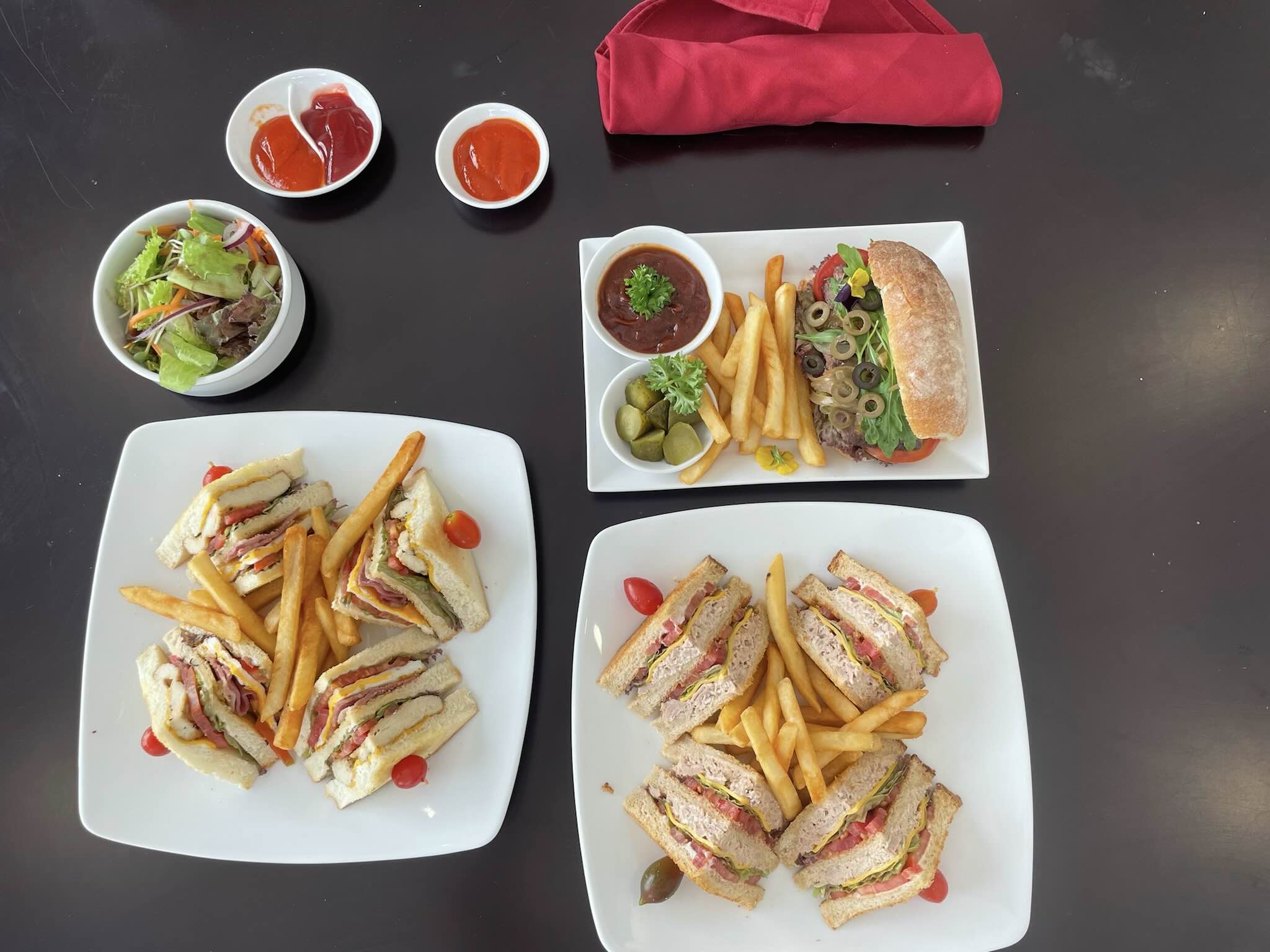 조식 먹고 수영장에서 놀다 룸으로 돌아와 시킨 샌드위치들입니다. 클럽샌드위치, 참치샌드위치, 불고기 샌드위치 였던 걸로 기억합니다. 클럽샌드위치가 가장 무난한 맛이었습니다. 케찹과 같이 나오는 핫소스(?)에 감자튀김을 찍어먹는게 넘 맛있더라구요.