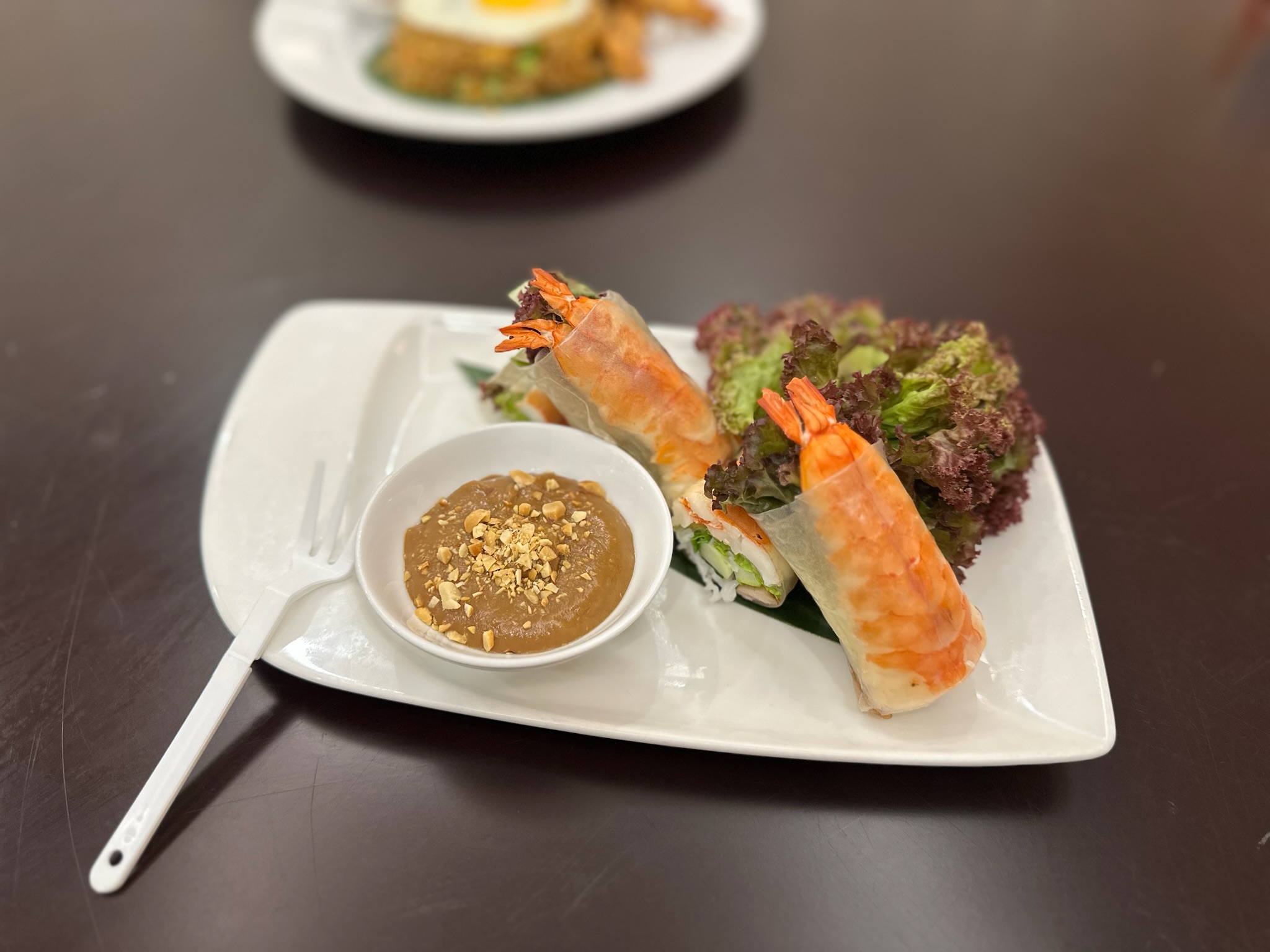 나시고랭과 함께 주문한 스프링롤입니다. 새우가 아주 튼실하게 들어있어 마음에 들었습니다. 고수가 들어있는데 저는 싫어해서 고수만 빼고 먹었습니다.