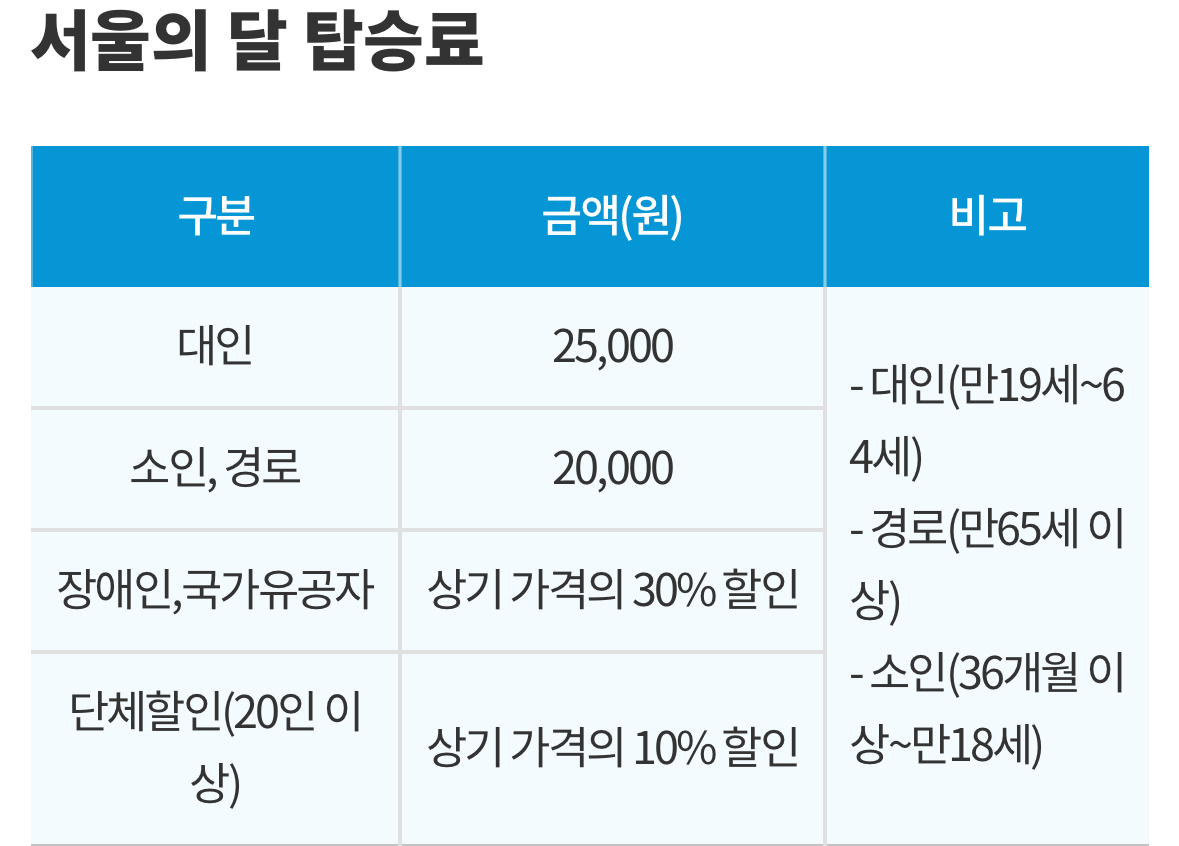 서울의 달 예약 및 가격 정보