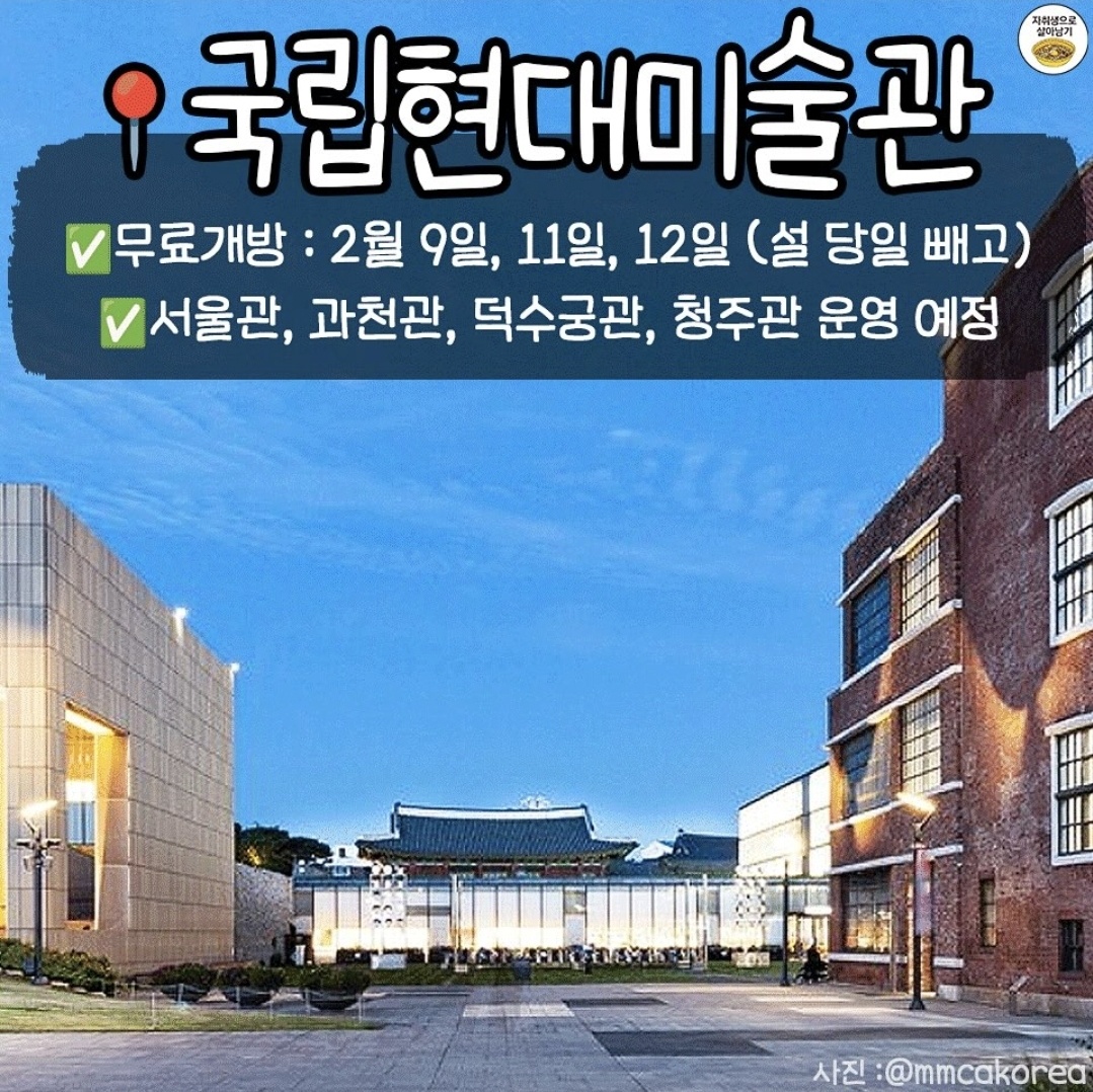 설 연휴에 가족들과 즐거운 시간 보내고 계신가요?? 가족, 친구들과 함께 즐거운 시간을 보낼 수 있는 나들이 장소를 소개해 드리겠습니다. 설 연휴 동안 무료로 입장할 수 있는 박물관, 도서관, 공원, 문화센터 등 다양한 장소가 있으니 함께 알아보도록 하겠습니다.