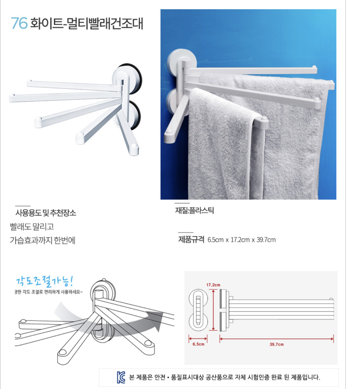 수건 속 세균이 번식하기 전에 수건 건조대로 소중한 빨래들을 지켜주세요~