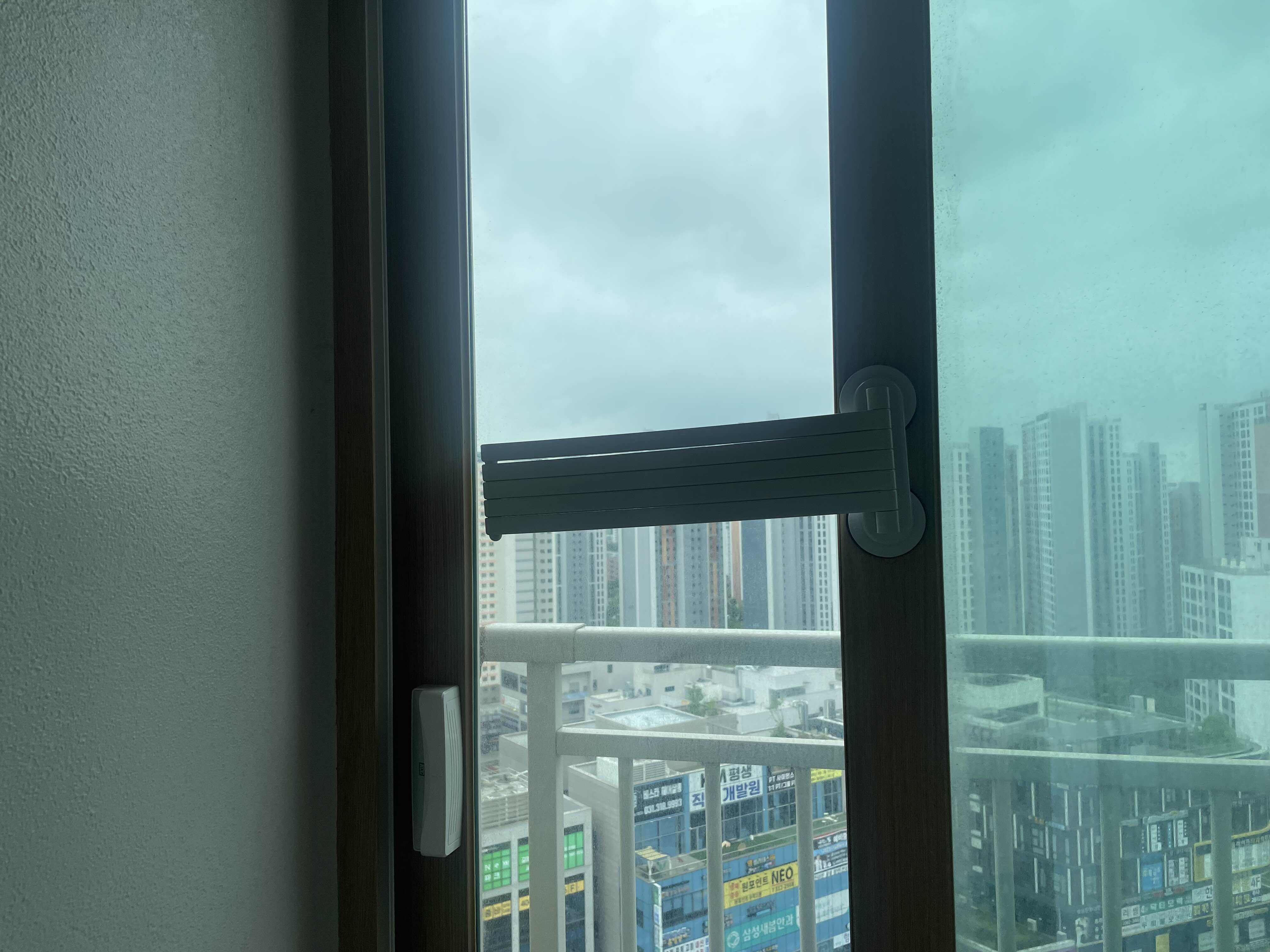세탁실 벽면에 설치하려 하였으나 부착면이 매끄럽지 않아 베란다 창틀에 설치를 하게 되었습니다. 창틀에 설치하여도 문을 여닫을 때 불편함은 전혀 없었습니다.