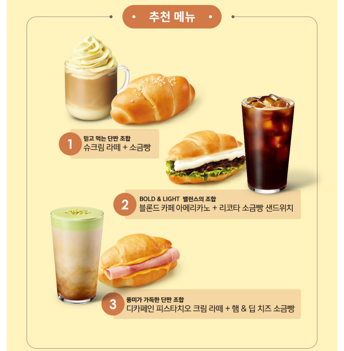 소금빵은 아메리카노와도 잘 어울리겠지만 스타벅스만의 슈크림라떼와 함께 먹는 걸 추천드려요. 달콤한 슈크림과 함께 즐기면 소금빵의 짭짤한 맛을 부드럽게 중화시켜 더 맛있게 즐기실 수 있을 것입니다.