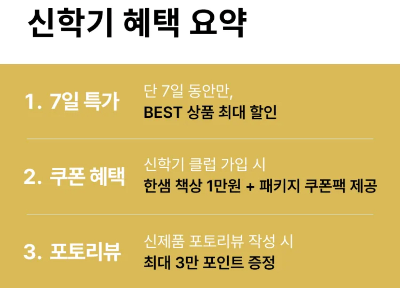 아래의 혜택 이미지를 클릭하면 한샘 신학기 이벤트 페이지로 이동합니다.