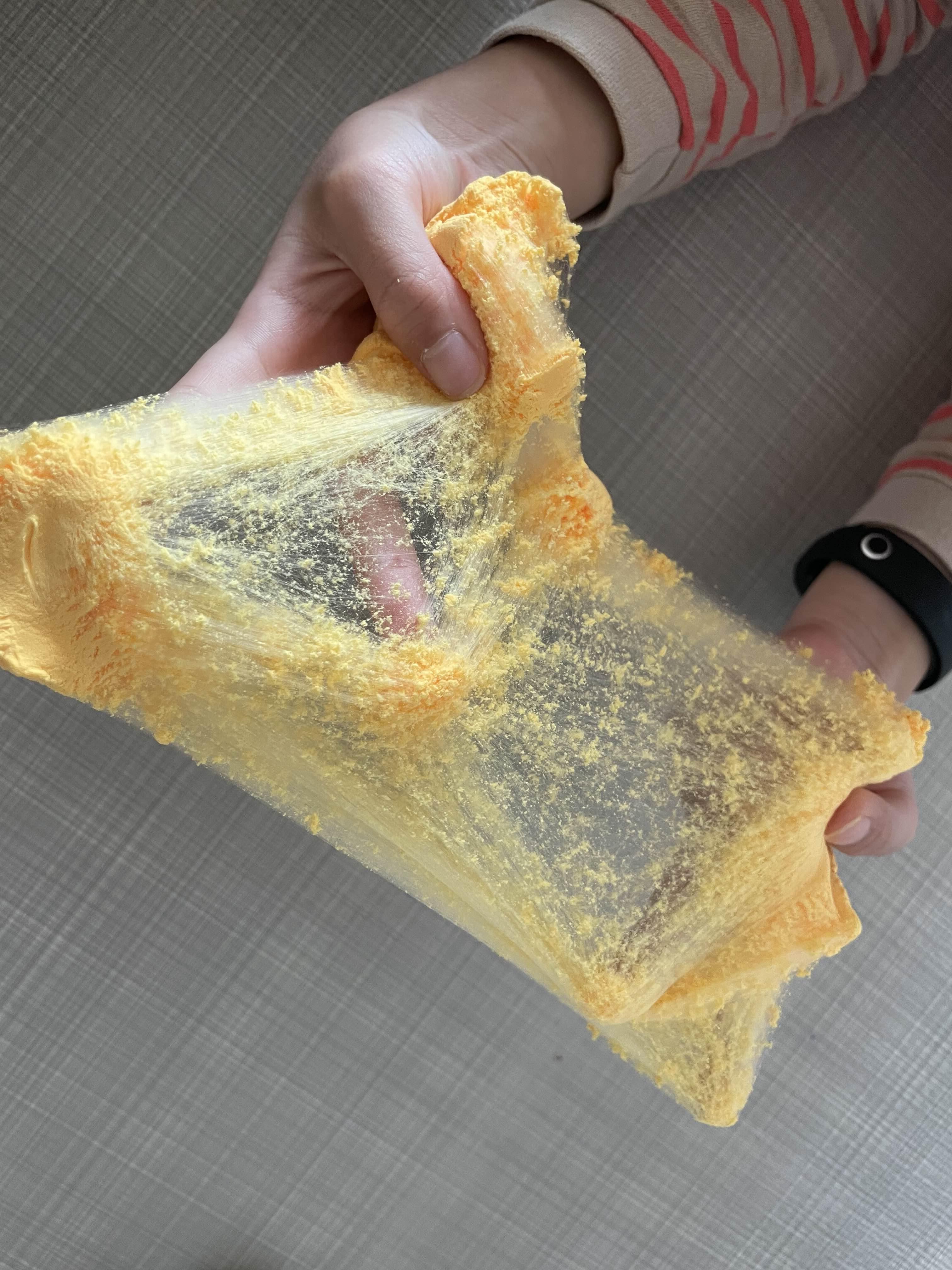 아이솜의 가장 큰 특징이 바로 이런 질감이라고 생각됩니다. 아이솜을 쭉 늘리면 이처럼 거미줄같은 것이 생겨납니다. 아이가 이 촉감을 아주 좋아하더라구요. 끝없이 조물거리고 늘리고를 반복하며 한참을 놀았습니다.