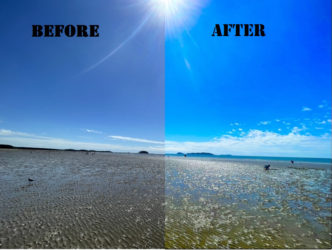 청포대 해수욕장에 조개를 캐러 다녀왔습니다. 바닷물이 빠져 갯벌이 보이던 바다를 찍었는데 이 사진을 한번 보정해 보겠습니다. 사진 어플에서 보정하려는 사진을 선택한 후 오른쪽 상단에 "편집"을 클릭합니다.
