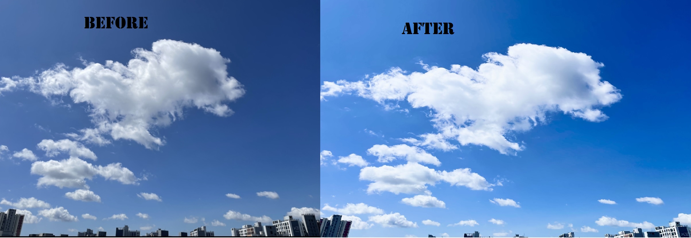 요즘 가을 하늘은 보정안해도 이쁘지만 밝기와 대비를 높여서 하늘과 구름이 좀 더 또렷하게 구분되게 보정하였습니다.