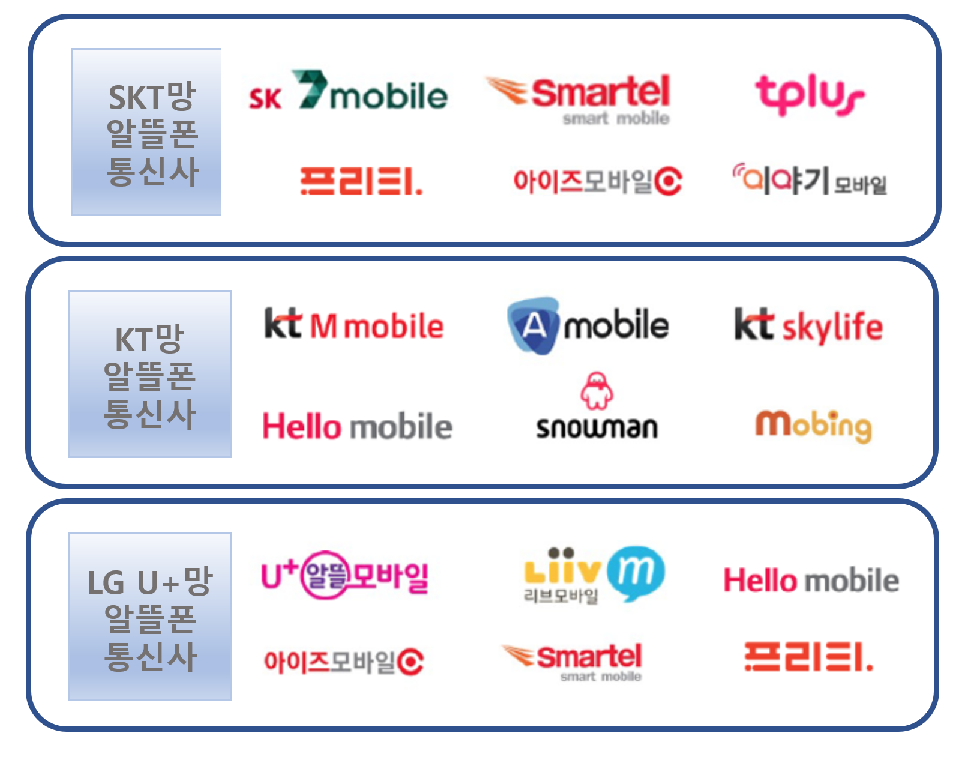 흔히 사용하는 SKT, KT, LG U+ 의 메인 통신사 외에도 다양한 알뜰폰 통신사들이 존재합니다. 이러한 알뜰폰 통신사를 이용하면 약정이나 위약금 없이 저렴한 통신비로 휴대전화를 사용할 수 있습니다.