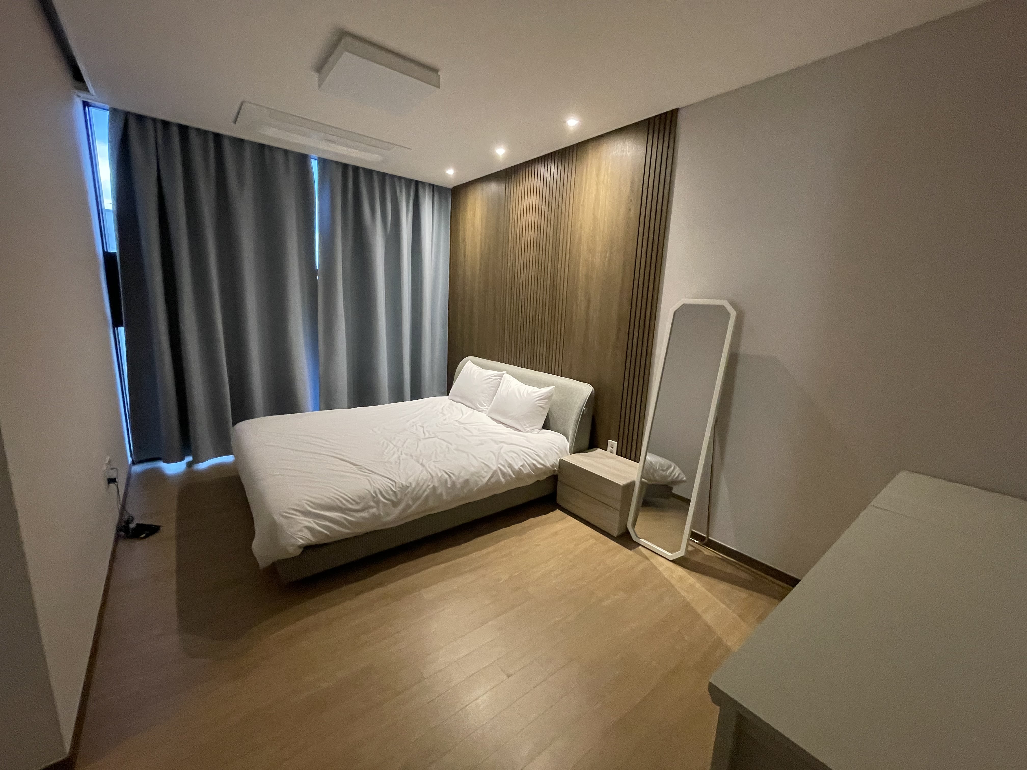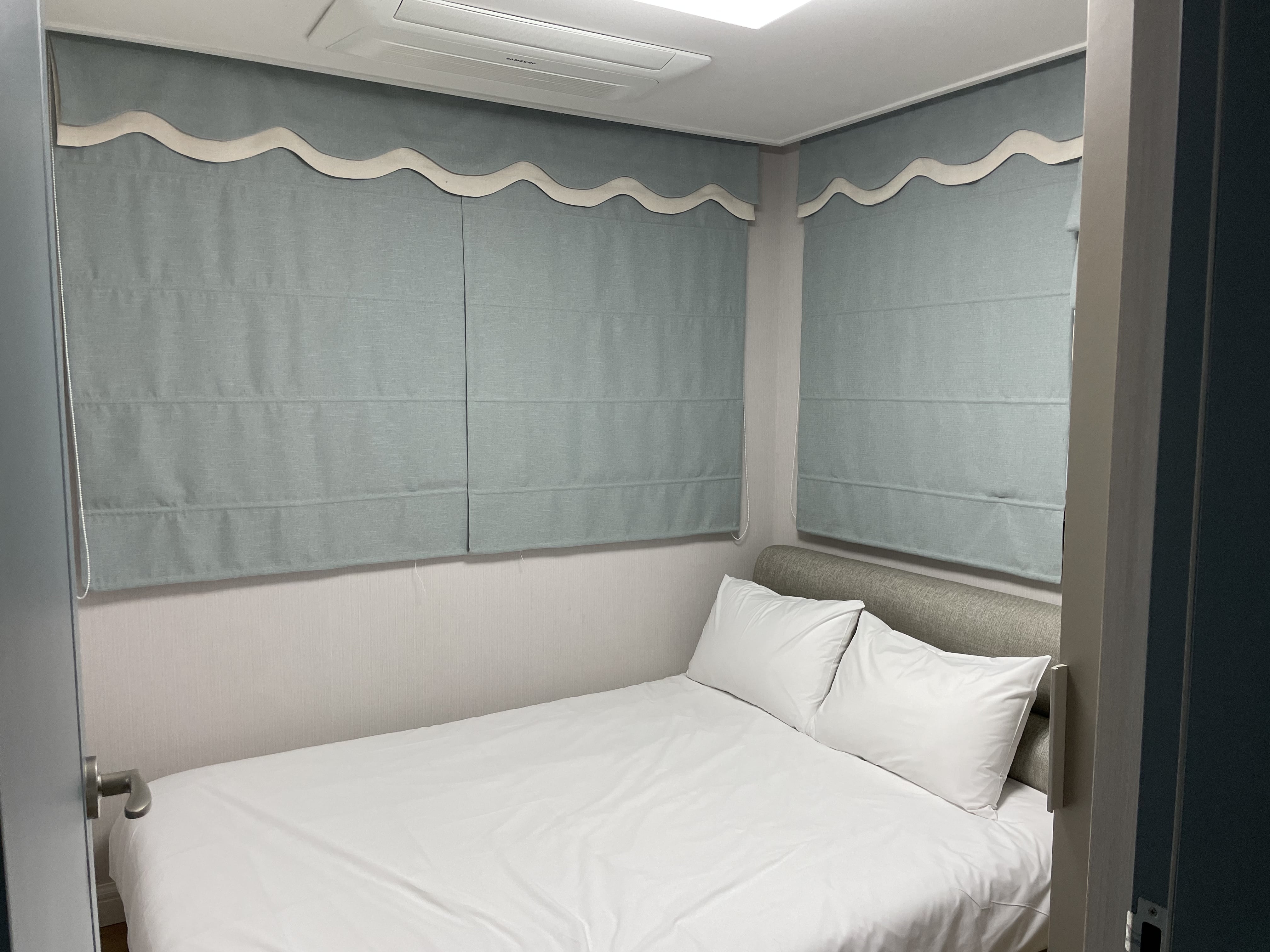 비밀번호를 누르고 안으로 들어가면 1층에 방 두 개와 주방, 거실, 화장실과 세면대가 위치해 있습니다. 2층건물이라 거실의 천장이 높이 탁 트인 느낌이 참 좋았습니다. 거실에서 애월 바다를 바라보며 힐링한 시간도 참 좋았습니다. 커튼을 걷은 사진을 못 남긴 게 좀 아쉬운데 아침에 일어나서 거실 커튼을 걷고 바다 풍경을 보며 모닝커피 한잔 하시는 걸 꼭 추천드립니다.