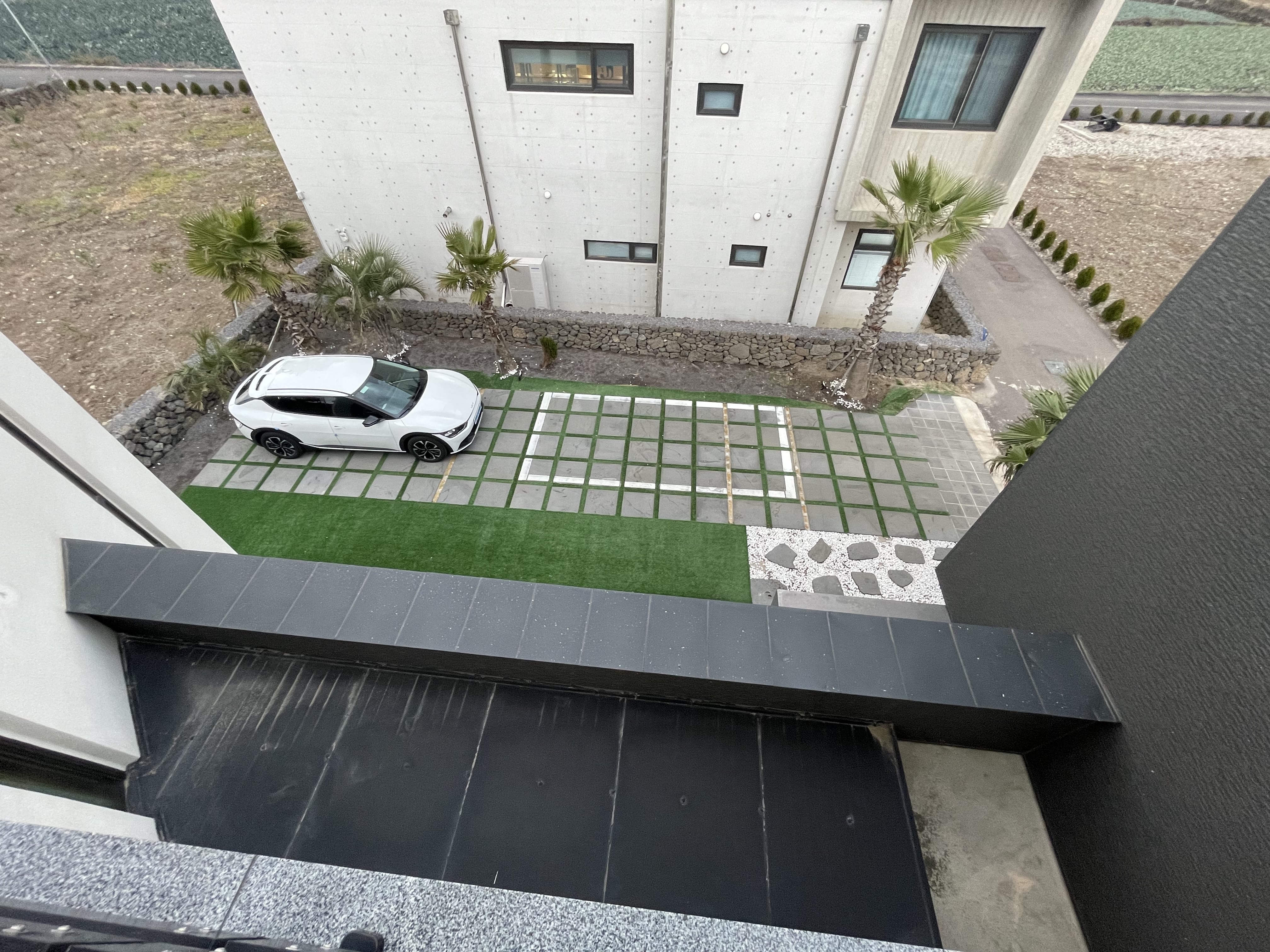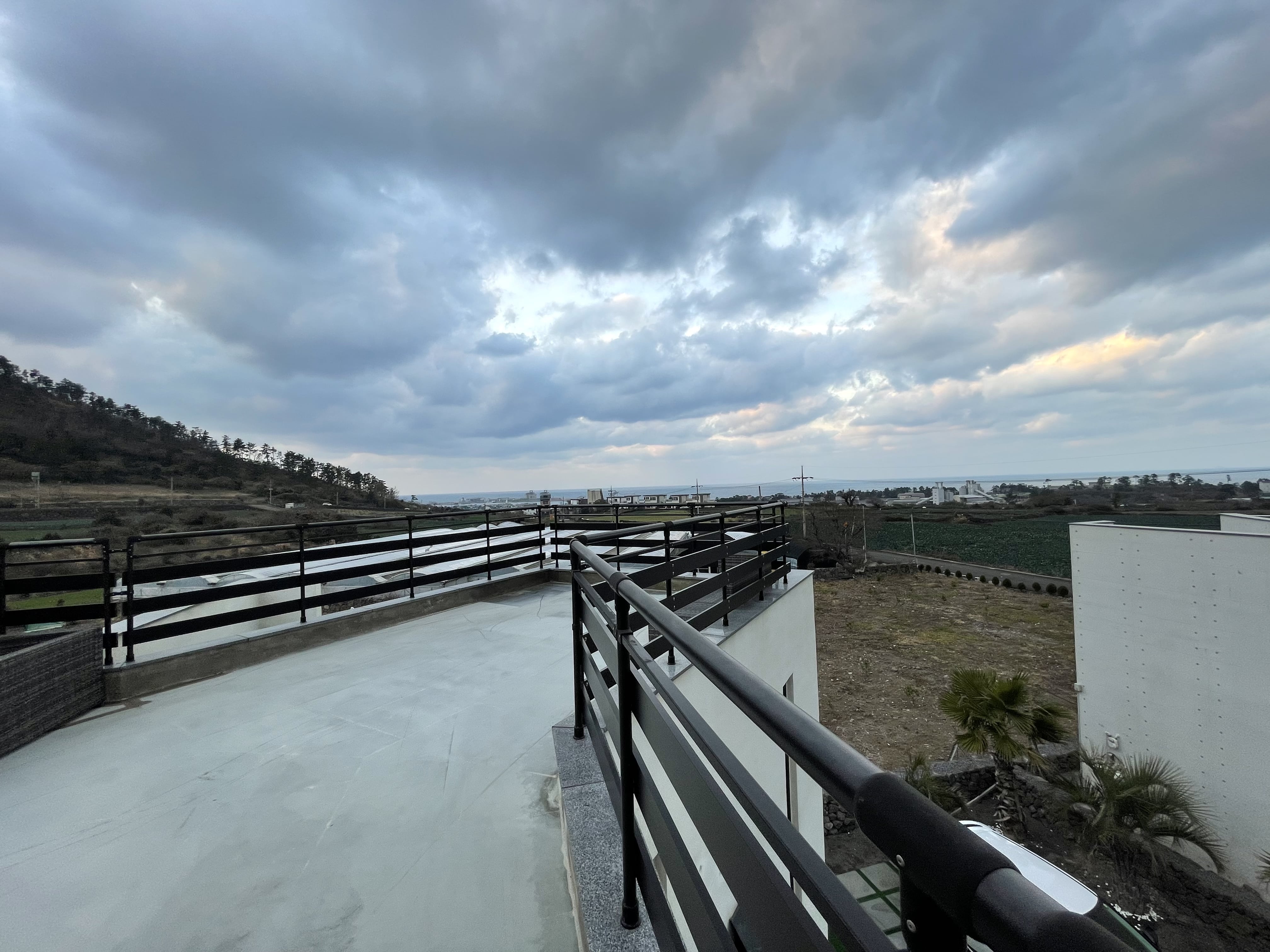 옥상에서 바라본 제주 하늘은 참 아름다웠습니다. 겨울이라 날이 추워 오래 있지 못했지만 따뜻한 계절에는 옥상에서 따뜻한 바람을 느끼는 시간도 좋을 것 같다는 생각이 들었습니다.