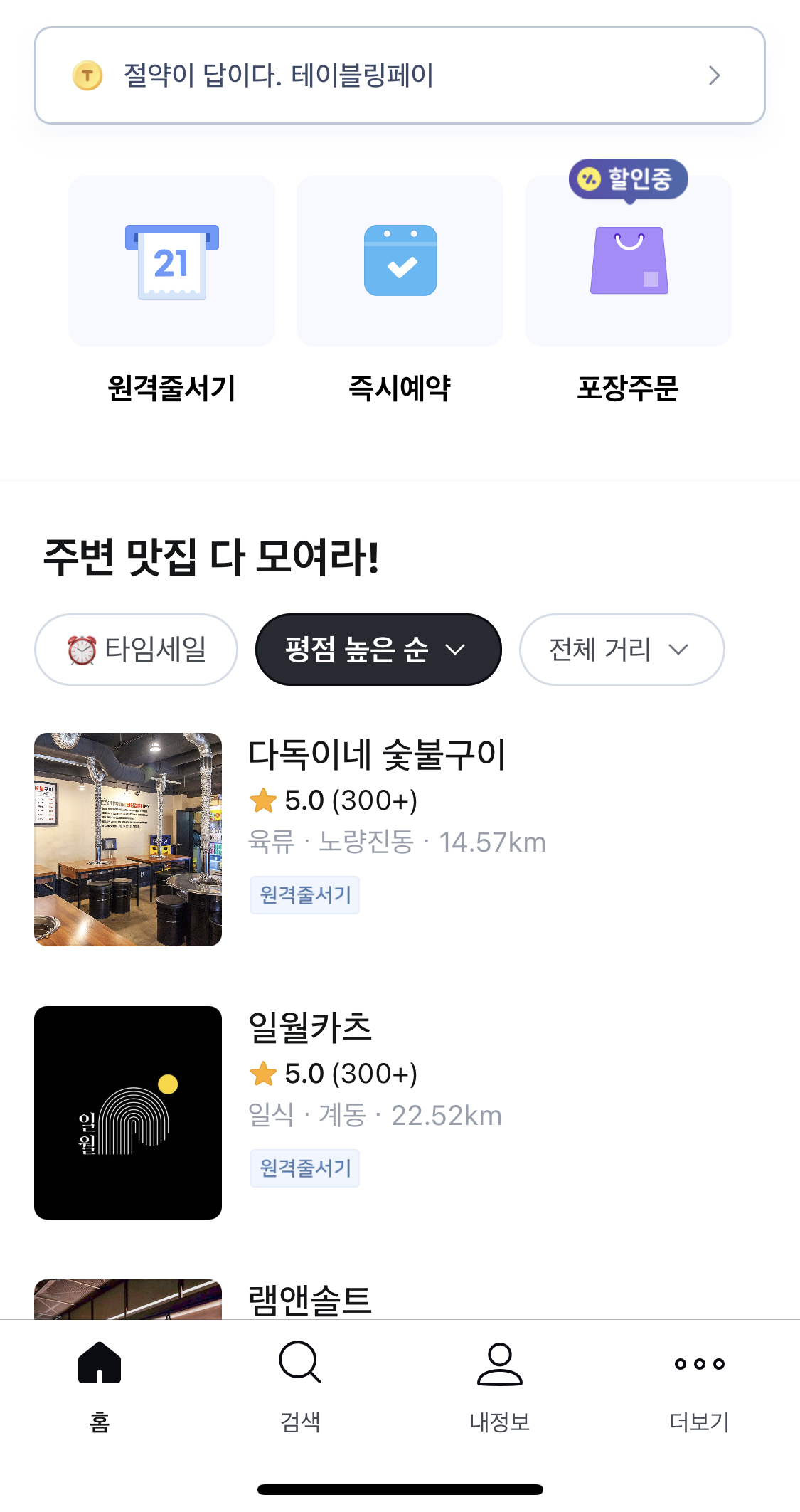 테이블링 앱은 유명 맛집의 원격줄서기부터 포장주문까지 할 수 있는 예약 앱입니다.
