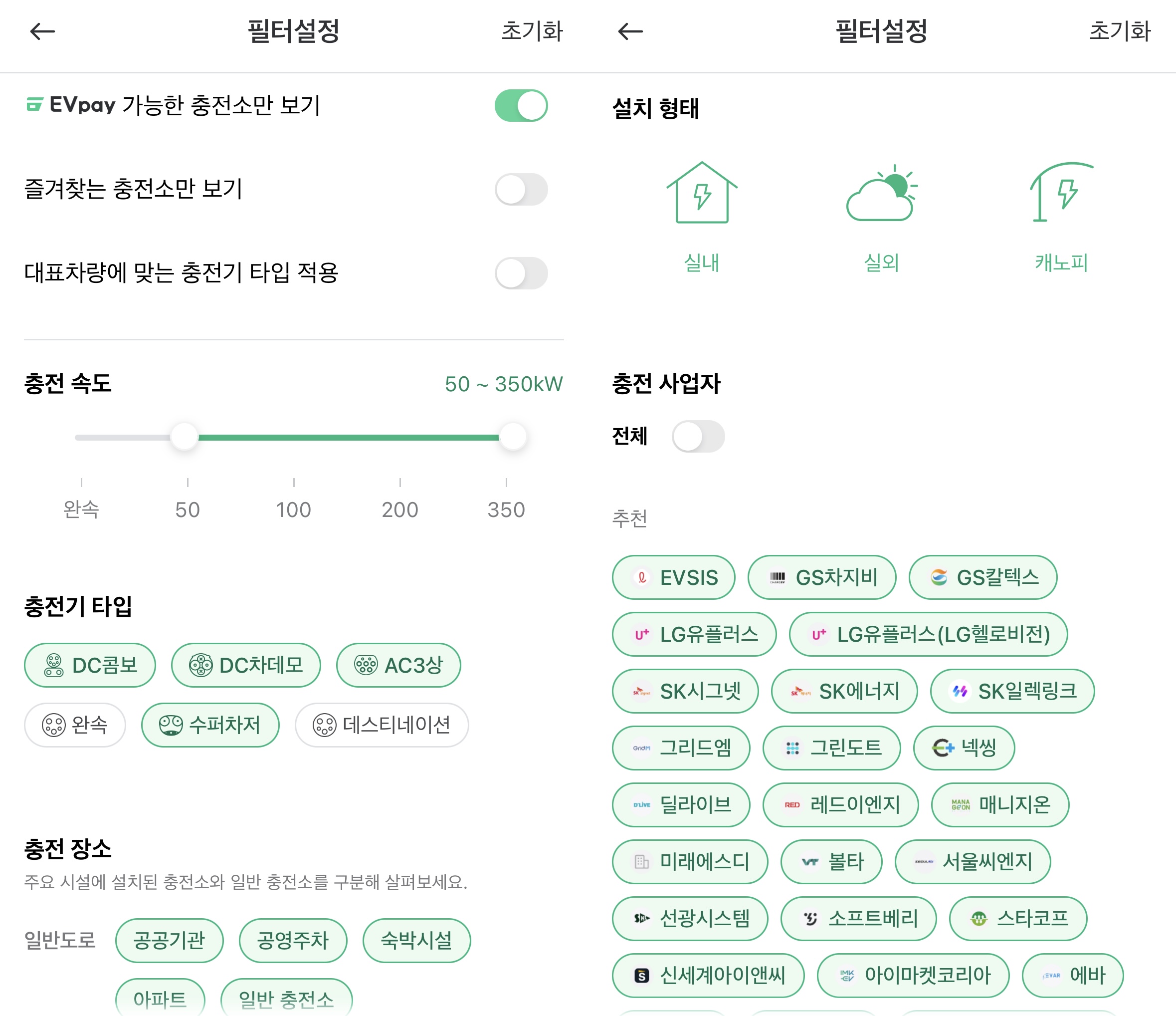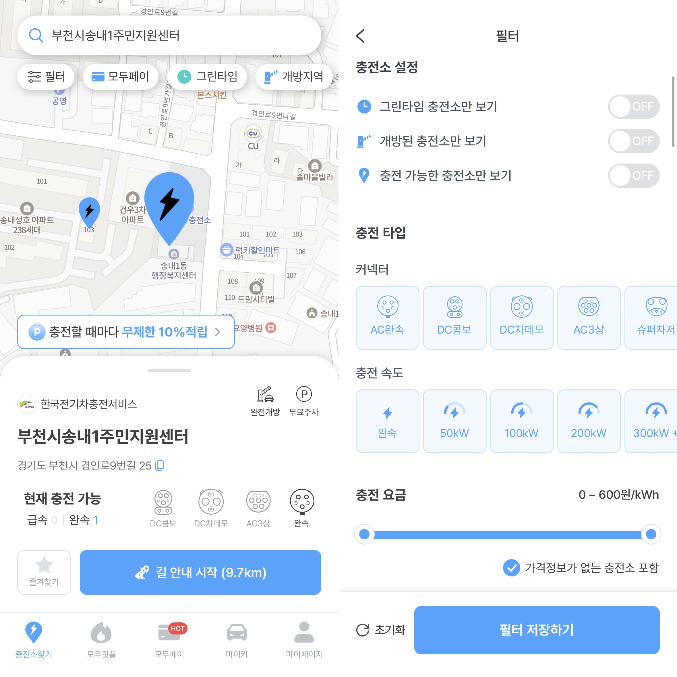 또한 다양한 옵션설정을 통해 나에게 딱 맞는 충전장소만 볼 수도 있는 점이 좋았습니다.