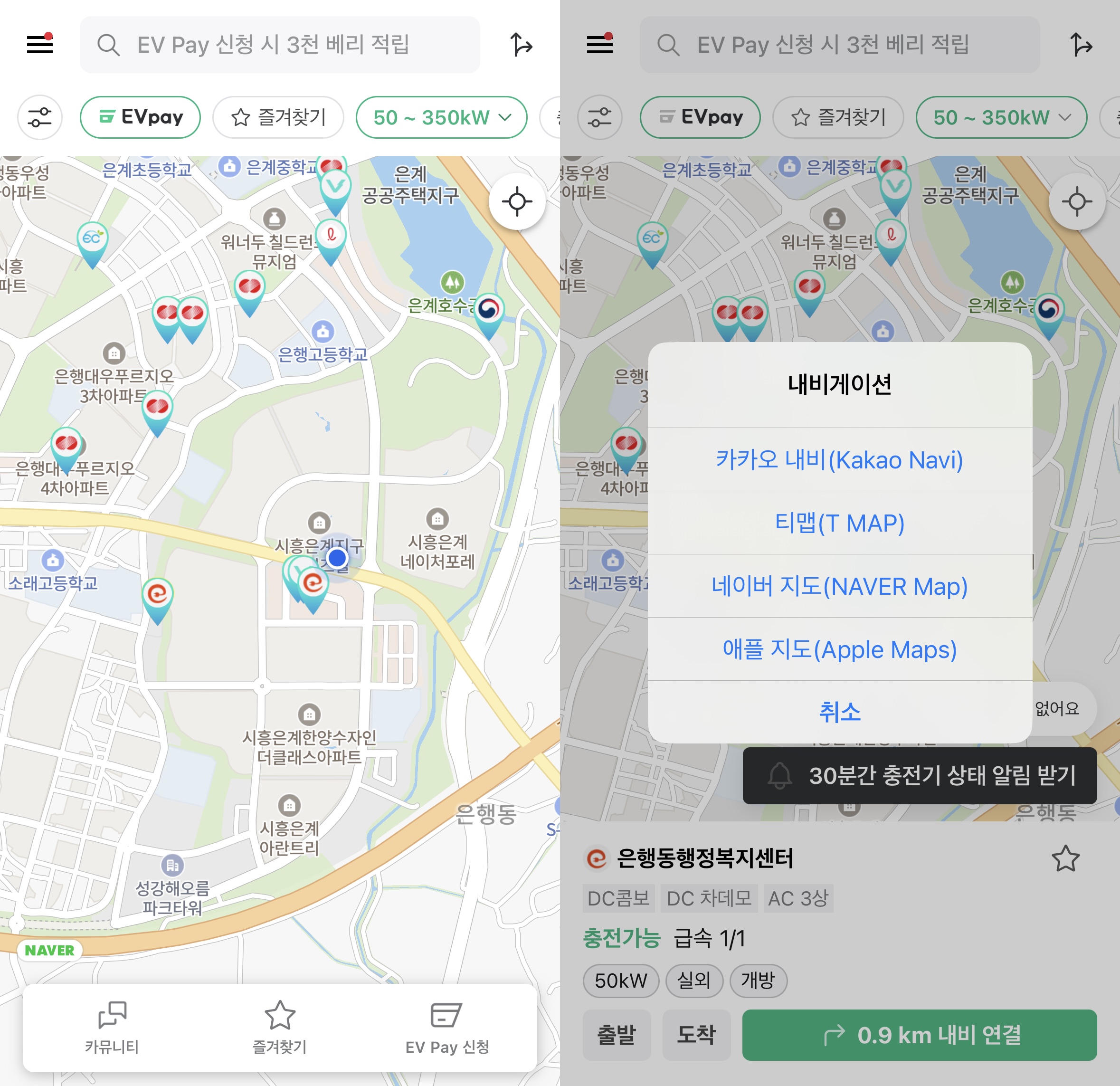 이 앱은 EV Infra와 마찬가지로 다양한 충전소 정보를 제공하며, 사용자 친화적인 인터페이스로 쉽게 사용할 수 있었습니다.
