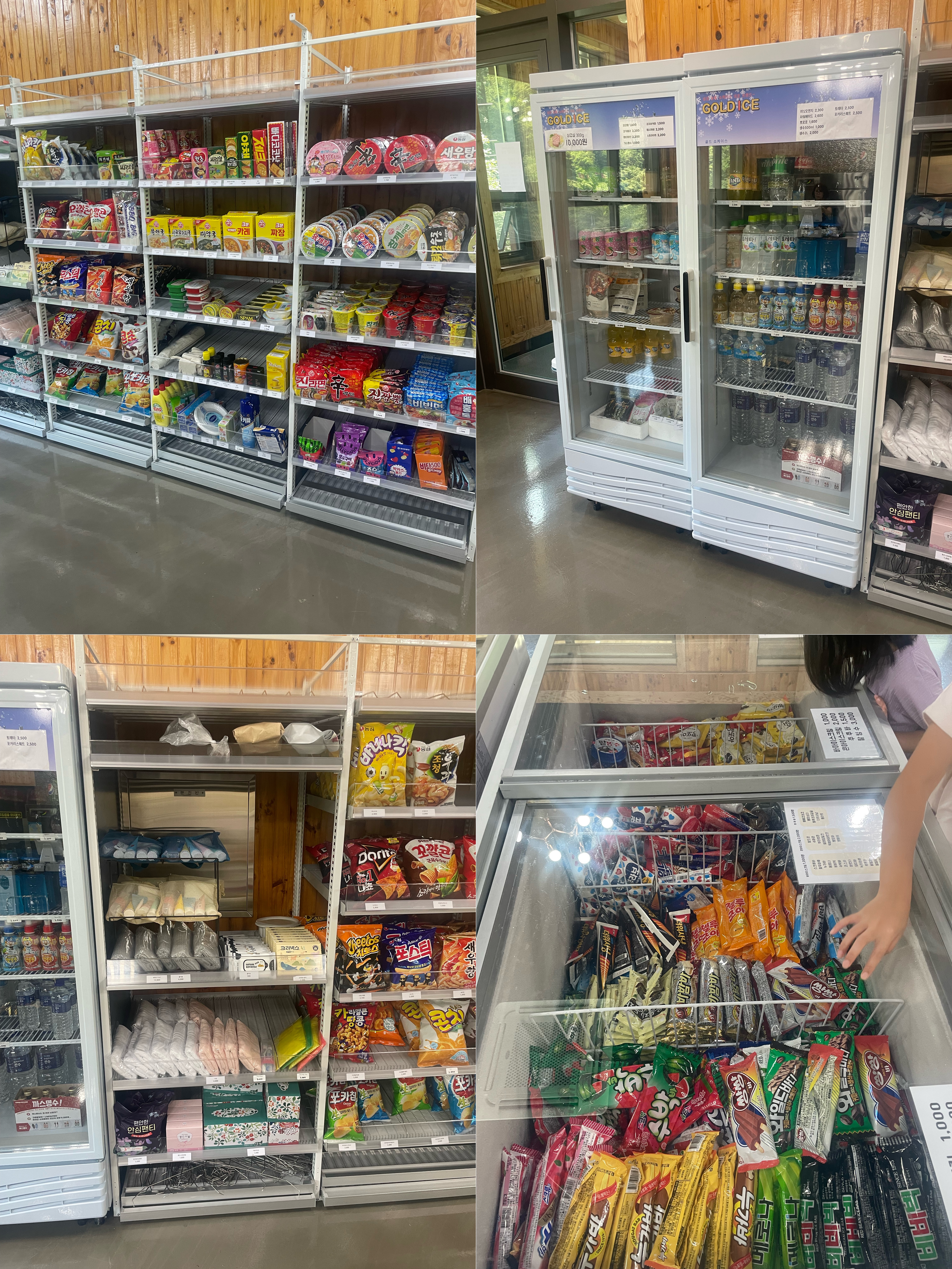 매점에는 다양한 먹거리와 생활용품들을 판매하고 있었습니다. 주류와 삼겹살도 매점에서 구매 가능합니다.