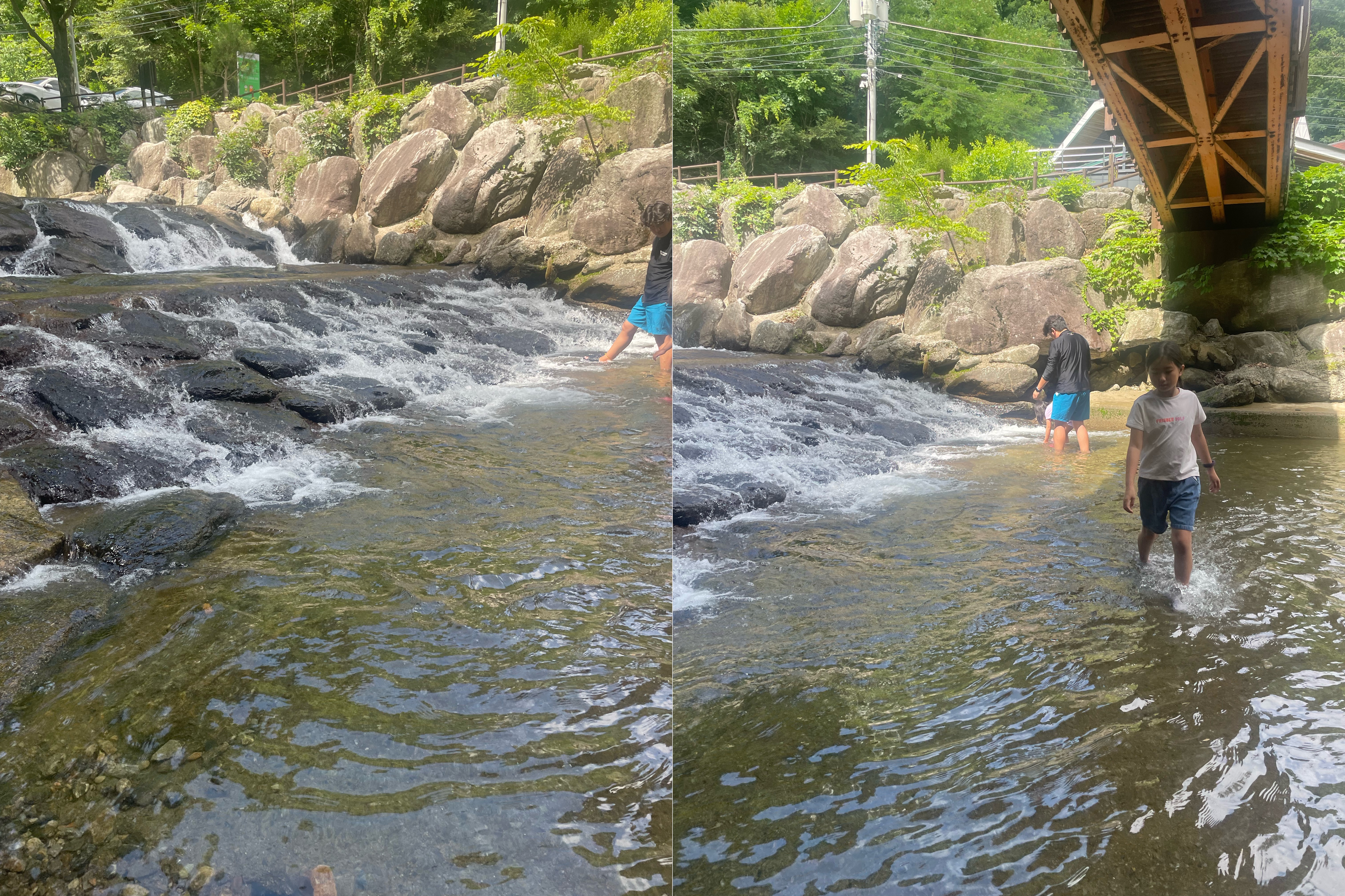 7월 방문이었는데도 물은 얼음처럼 차가웠습니다. 오전에 계곡에 내려갔을 땐 발이 얼것같은…
