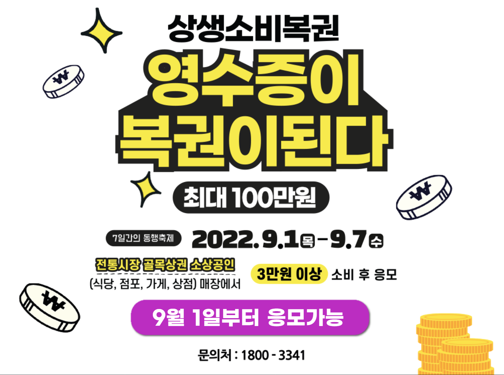전국민을 대상으로 하는 최대 100만원 영수증 복권이벤트 (2022.9.1-9.7)