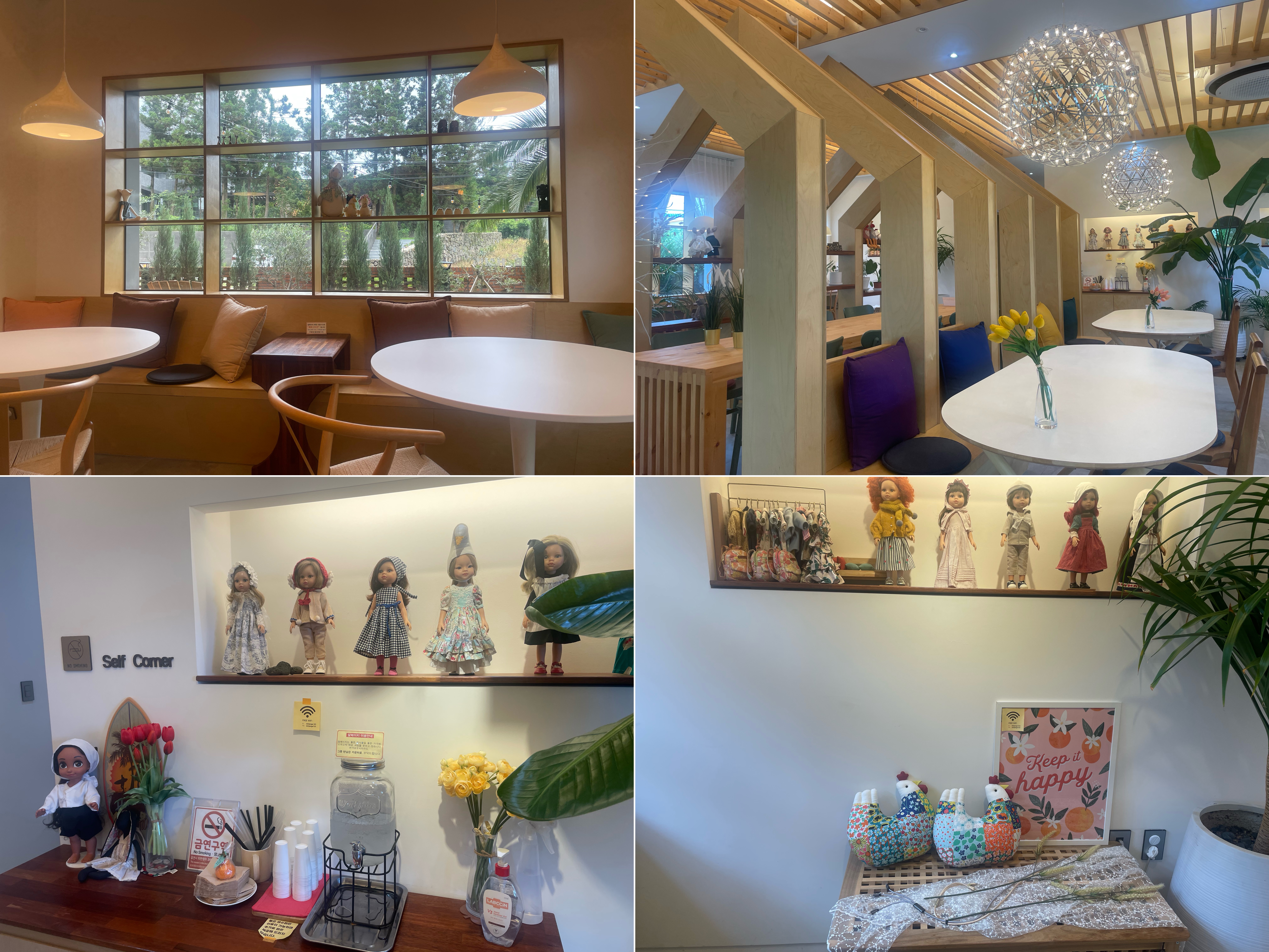 이곳은 브런치를 먹고 싶어 검색 후 방문한 곳입니다. 인테리어가 정말 이쁘더라고요!!! 앉는 곳마다 포토존이었습니다. 브런치와 커피도 맛있었습니다. 특히 부드러운 프렌치토스트와 콩포트 그릭 요거트가 마음에 쏙 들었습니다.