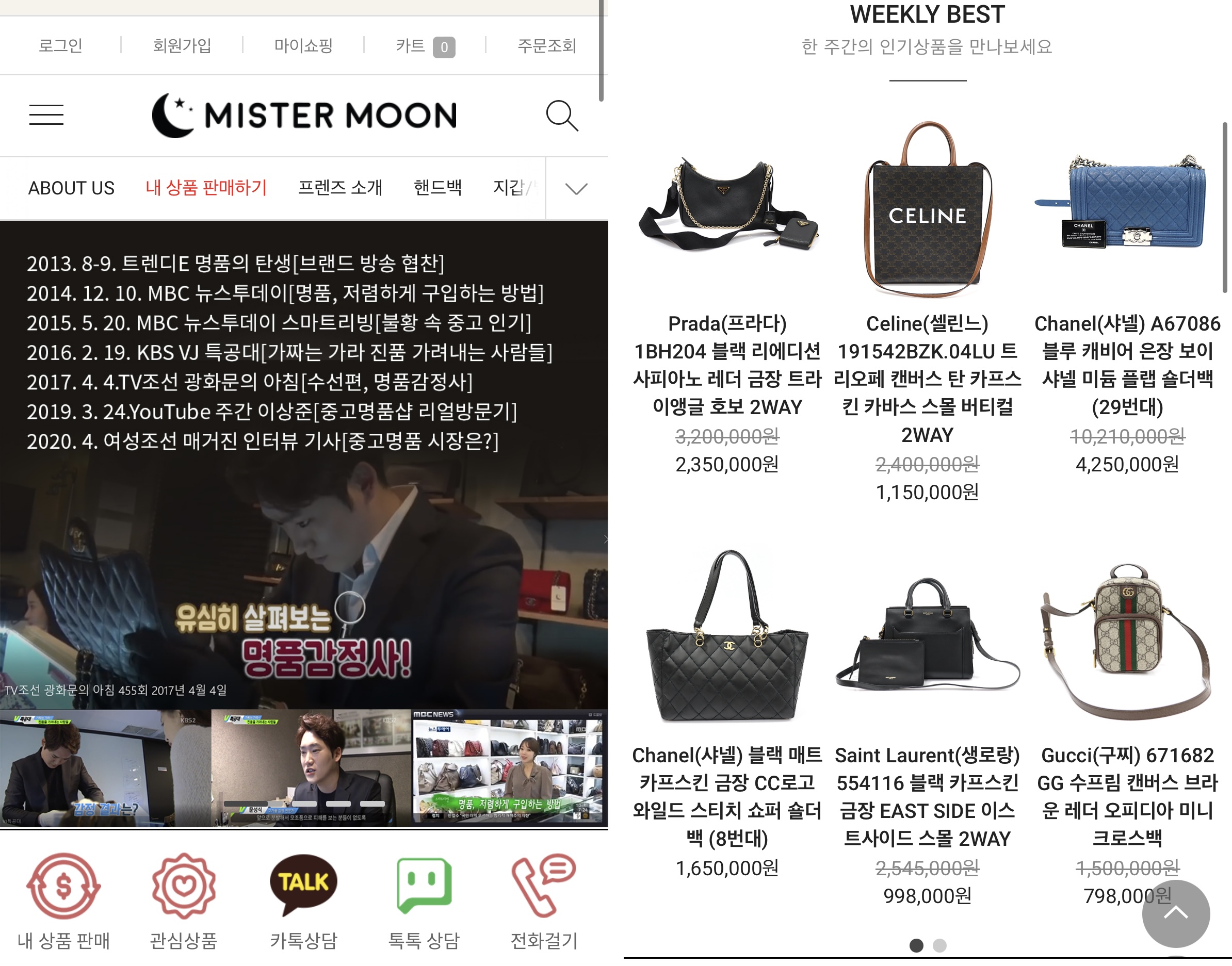 서울에 위치한 미스터문은 100% 정품만을 취급하는 중고명품 사이트입니다. 빠른 위탁판매와 무료명품감정 서비스를 제공하며, 고객의 만족을 위해 최고가 매입을 약속합니다. 신규회원은 2만 원 적립금을 증정과 카드 무이자 할부 등의 혜택을 제공하고 있습니다.