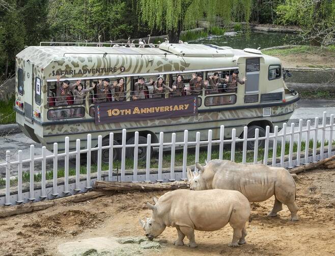 로스트밸리는 사파리 투어로, 개방형 지프 차량을 타고 들어가는 거대한 동물원입니다. 백사자, 기린, 코끼리 등 여러 야생 동물들을 가까이에서 볼 수 있는 기회를 제공하는데요.
