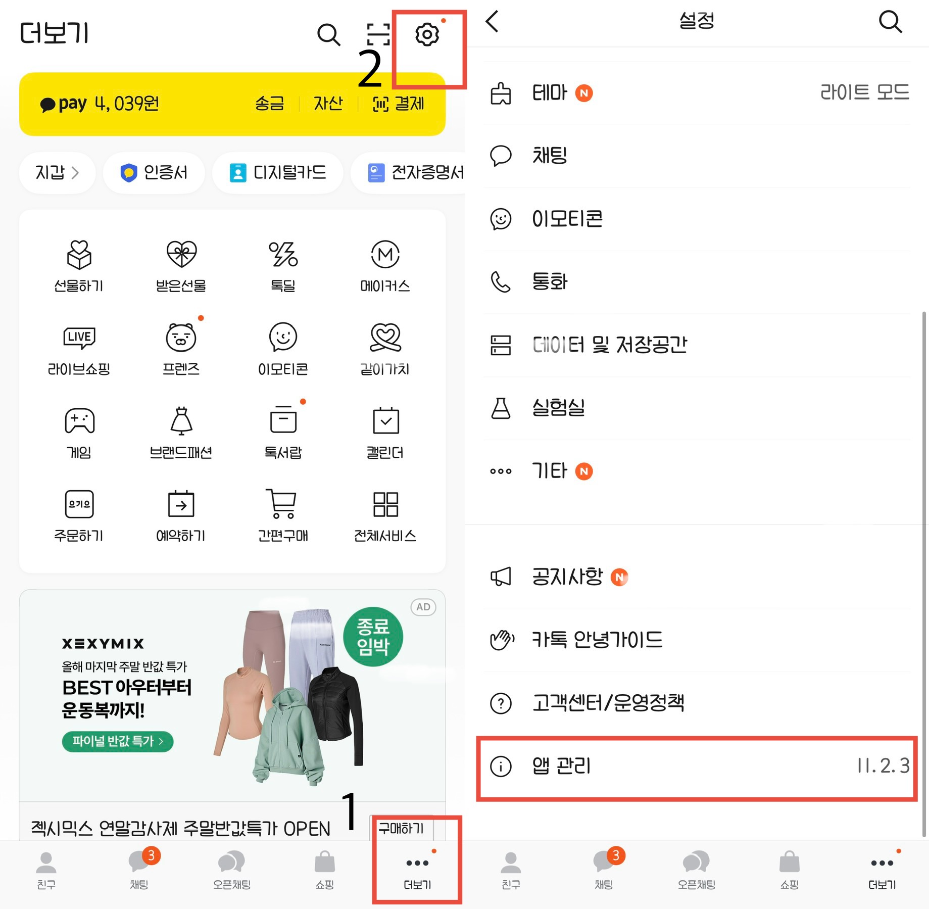 카카오톡 버전 확인 방법
