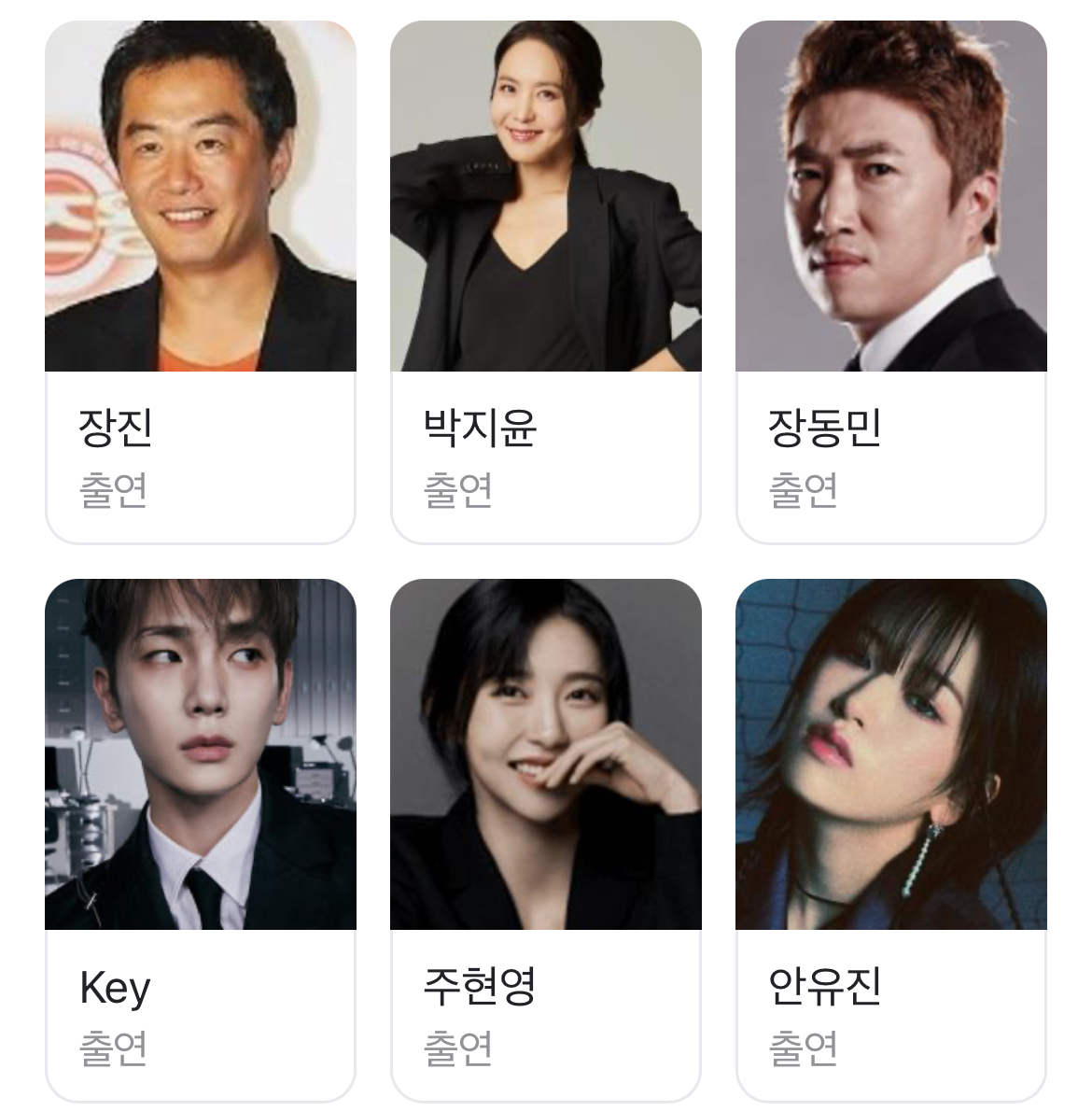 - 플레이어: 장진 감독, 박지윤 배우, 장동민 개그맨, 샤이니 키, 주현영 배우, 아이브 안유진