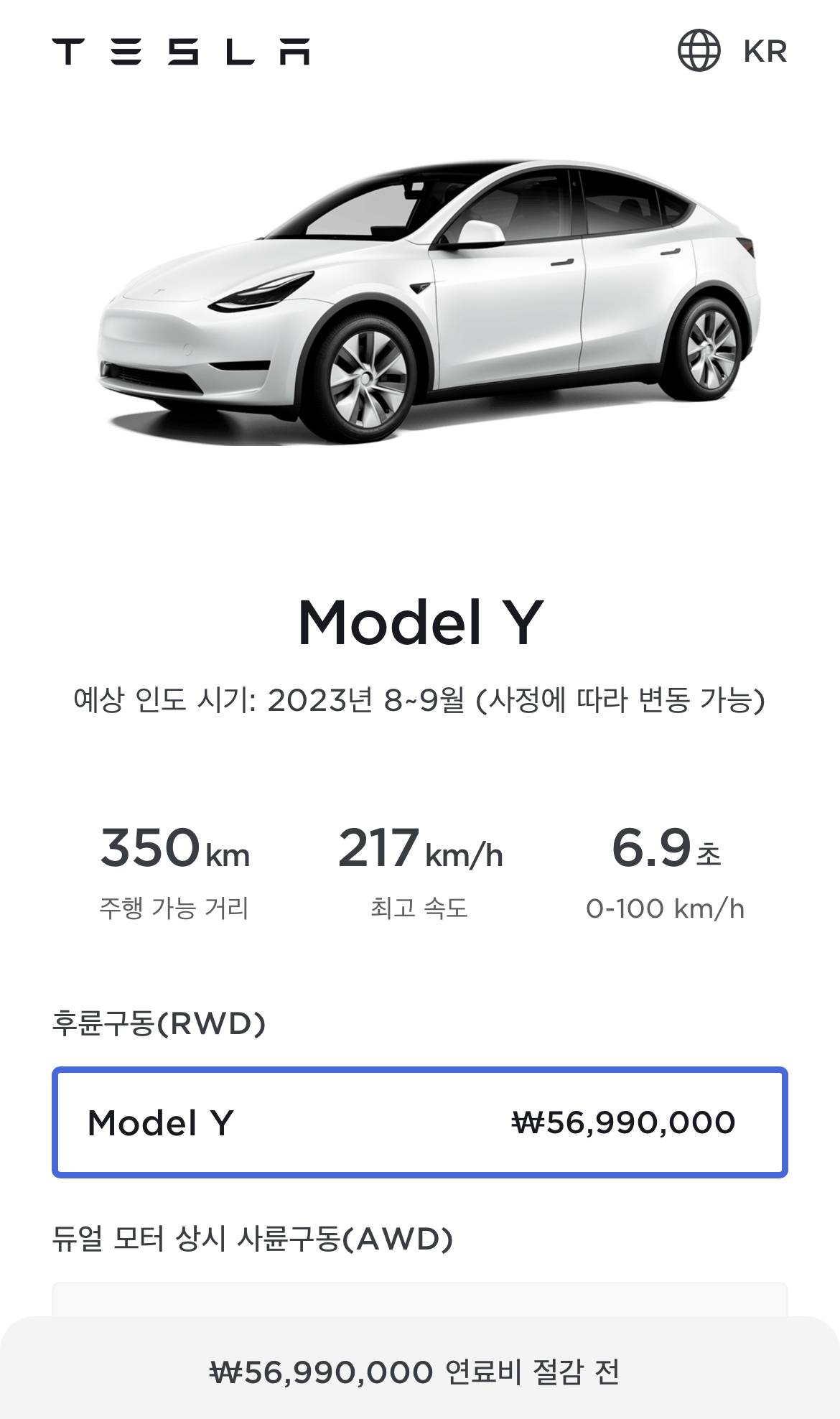 혹시 테슬라 차량 구입을 계획하고 계실까요?? 테슬라 코리아에서 모델Y 후륜구동(RWD) 모델을 판매하기로 하였습니다. 보조금 지급을 받으면 4천만 원 대에 구입할 수 있다고 하는데 이 모델은 어떠한 특징이 있고 언제부터 구매 가능한지 지금부터 자세히 살펴보겠습니다.