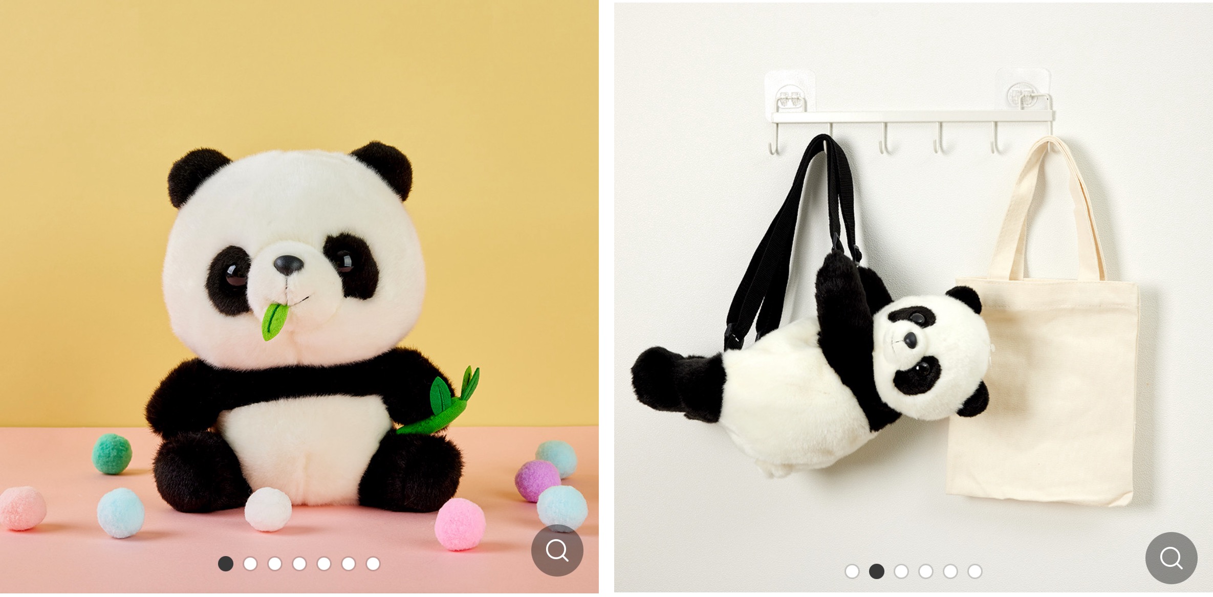 - 인형: 푸바오의 모습을 본떠 만든 다양한 크기의 인형이 있습니다. 털이 부드럽고 촉감이 좋아 눈을 감으면 푸바오가 옆에 있는 것 같은 기분이 들 수 있습니다.