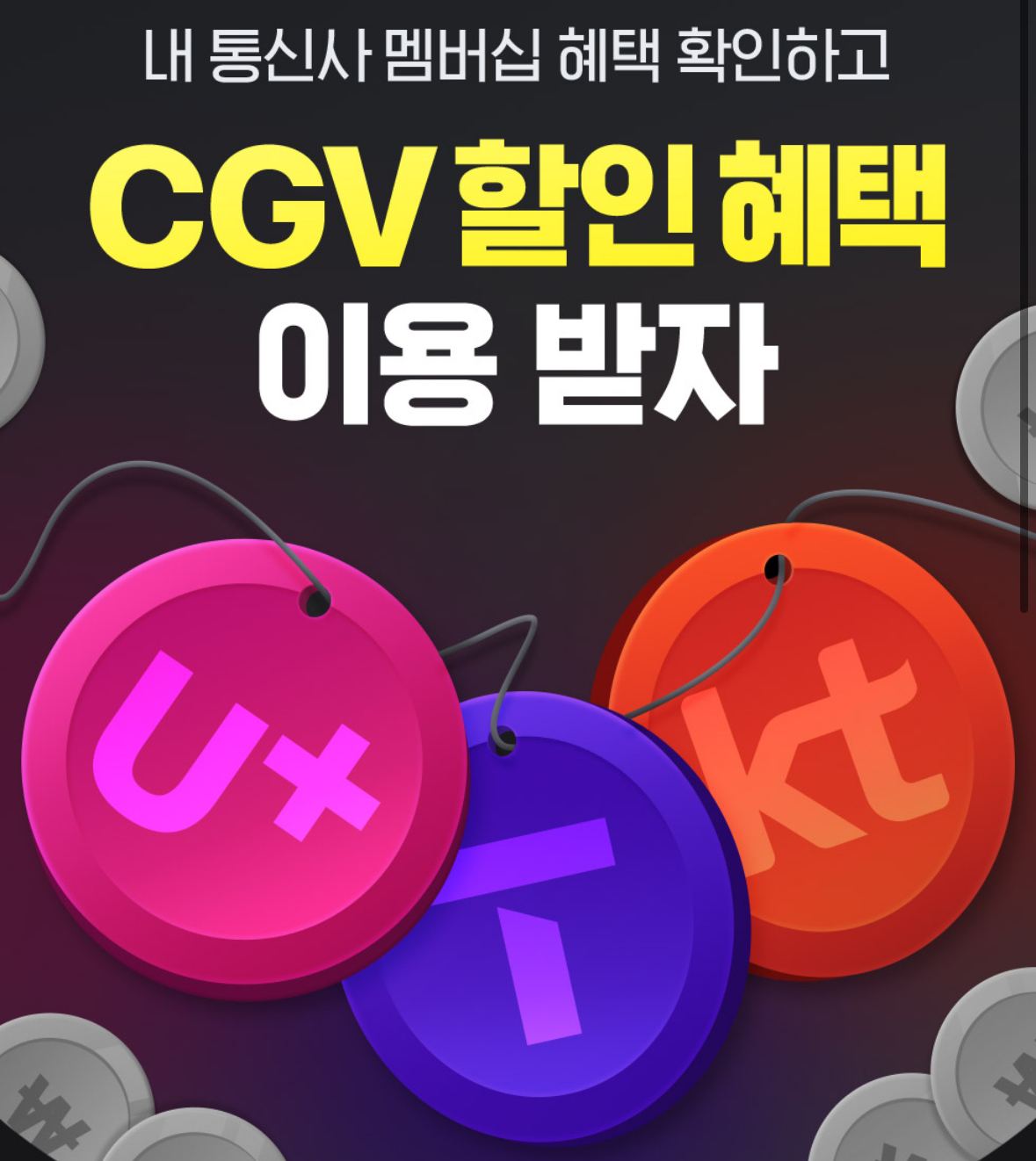 CGV에서는 통신사별 특별 할인혜택 제공 중입니다.