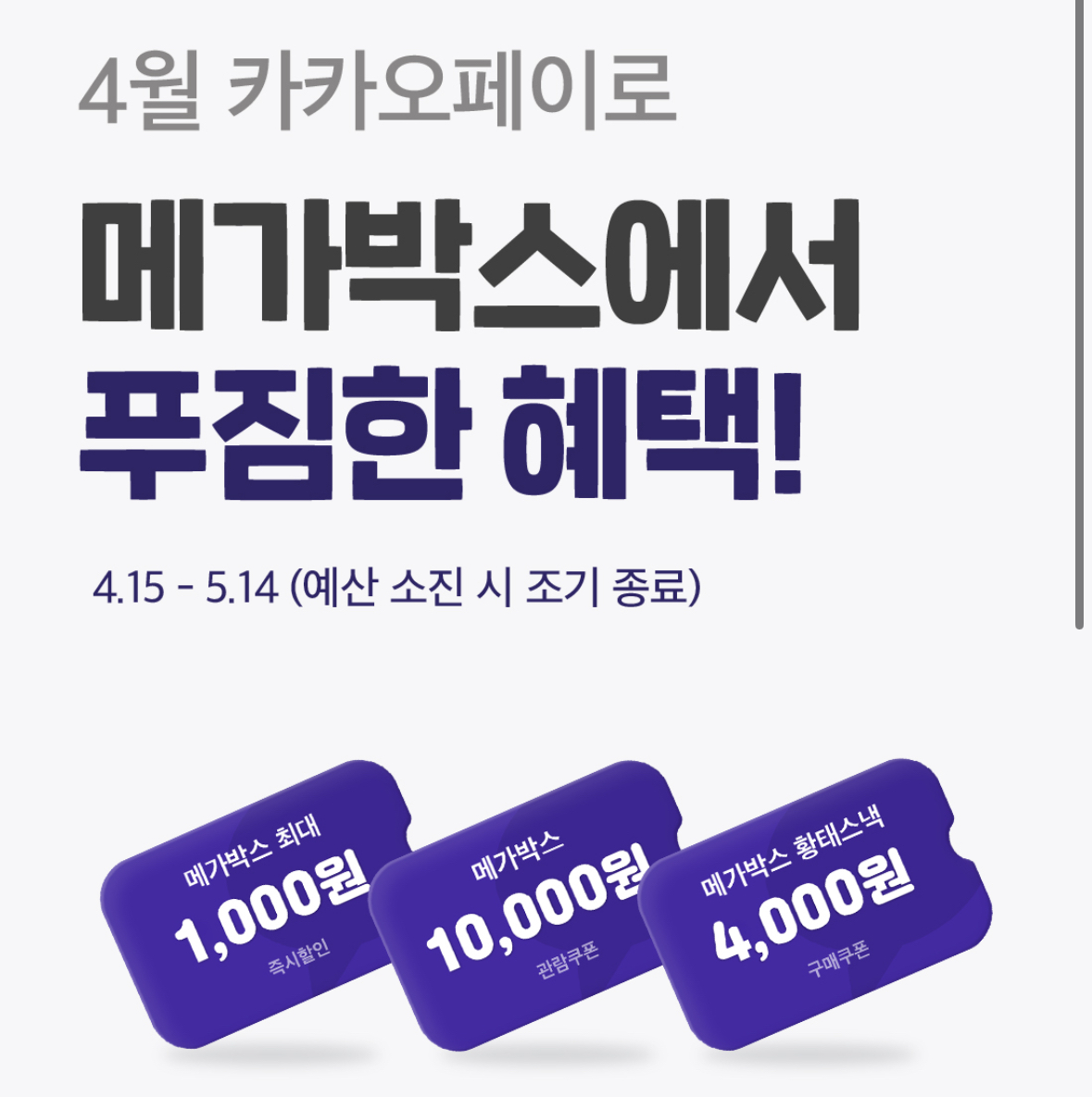 - 카카오페이 2만 원 이상 결제 시 1천 원 즉시 할인