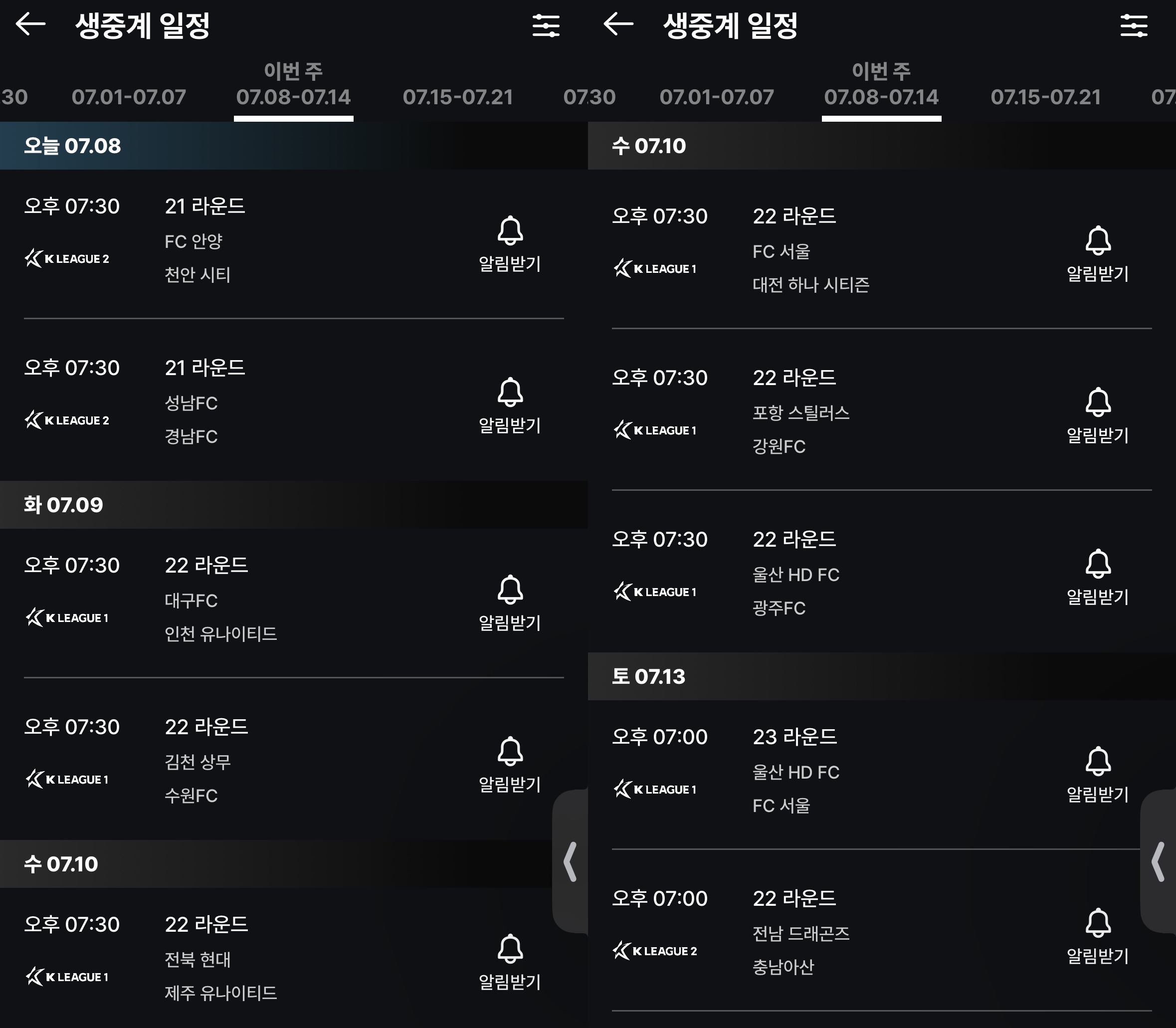 K리그 생중계 알림받는 방법