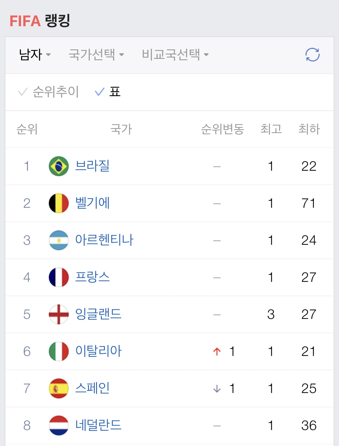 다음 경기를 치를 브라질은 세계 랭킹 1위의 강적입니다. 대한민국은 브라질과의 7번의 대결에서 1승 6패의 기록을 가지고 있습니다. 과연 이번 경기는 어떻게 될까요..