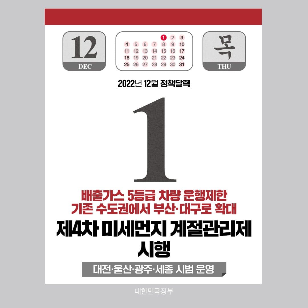 2022년도 한달밖에 남지 않았습니다. 남은 2022년 잘 마무리 하시길 바라면서 12월부터 달라지는 정부 정책에 대해 알려드리겠습니다.