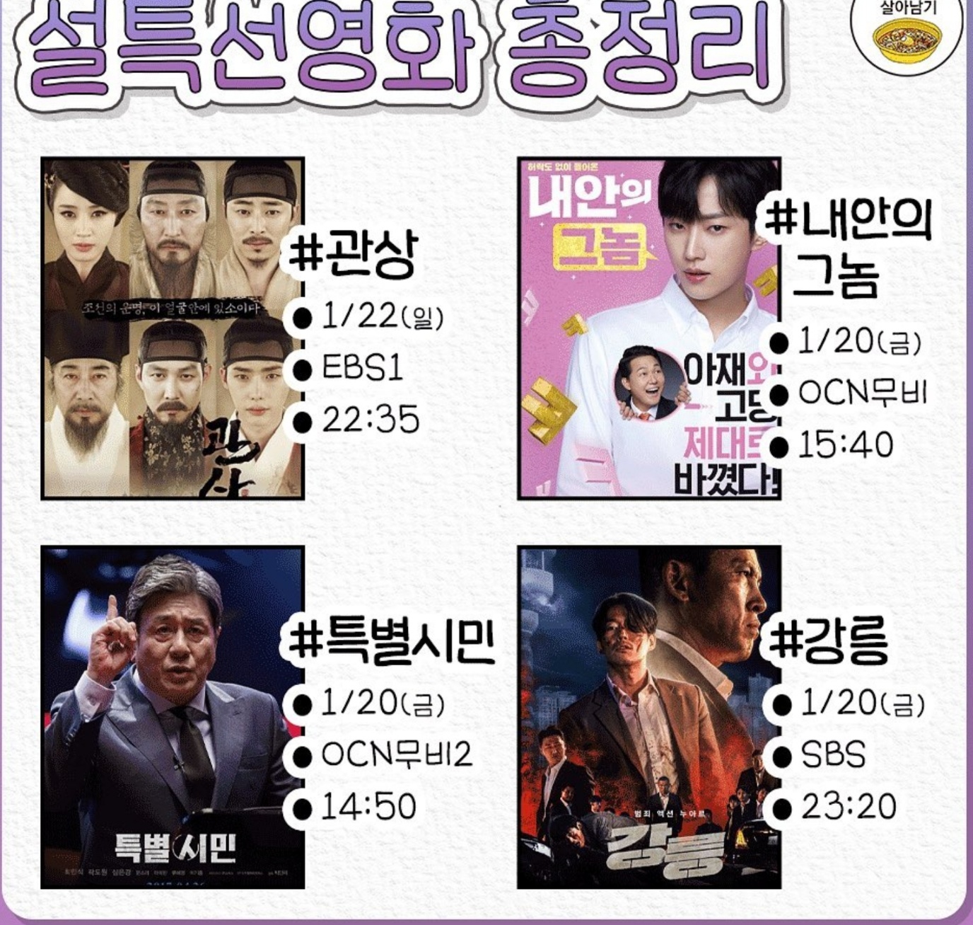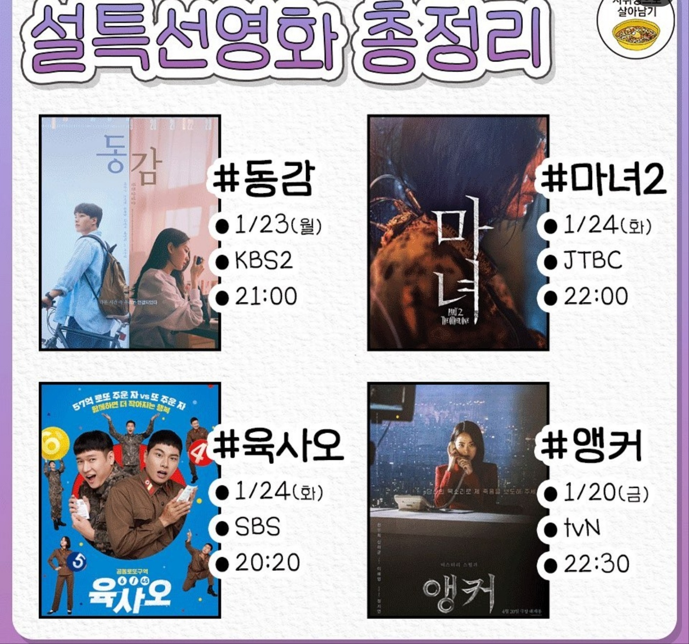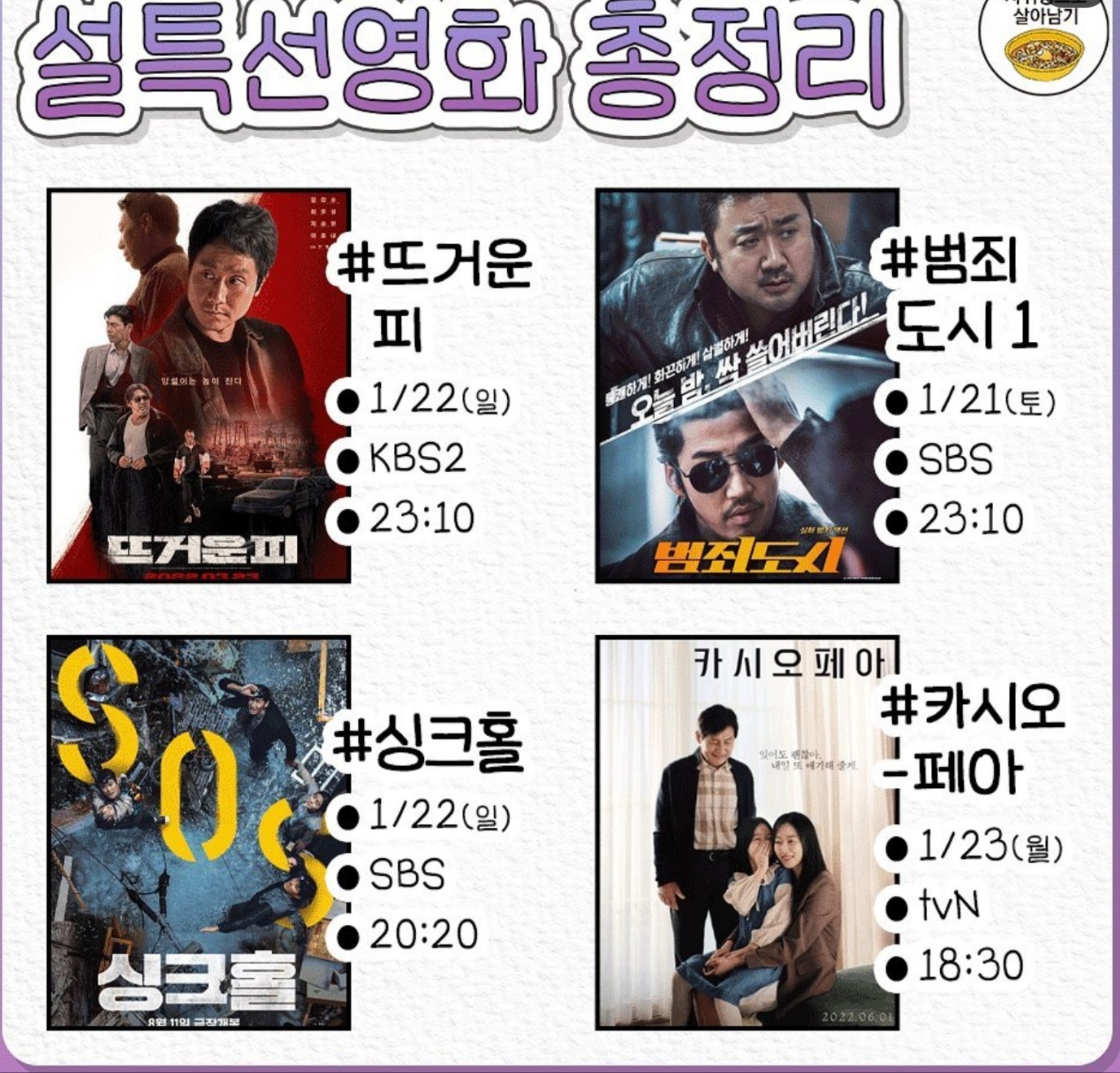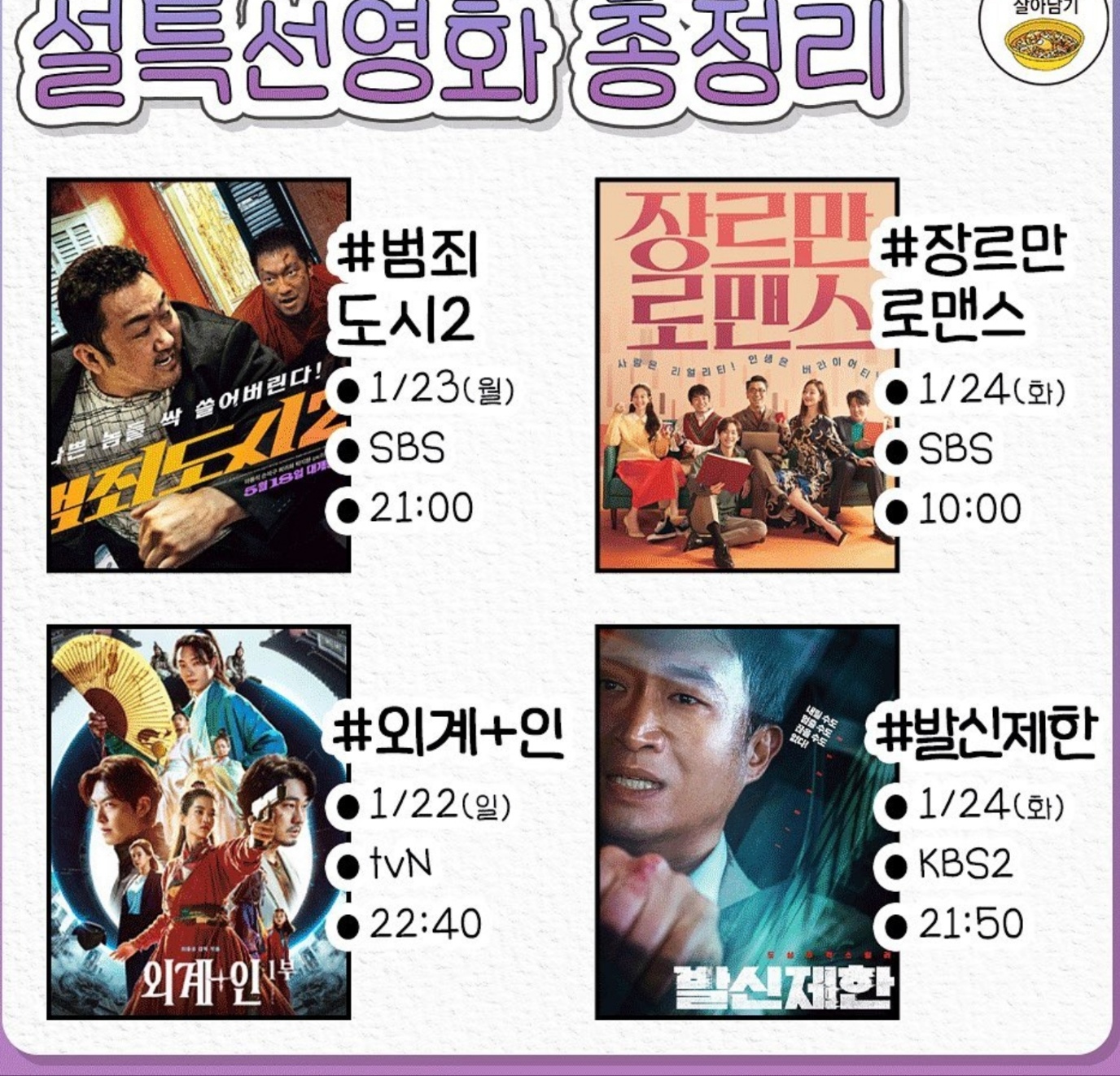 2023년 설 연휴가 곧 시작됩니다. 4일의 설 명절동안 즐겁게 보낼 계획 세우셨나요?? 설 연휴를 풍성하게 해줄 특선 영화 정보 알려드리려고 합니다. 최신작이 많은 2023년 설 특선영화 일정 미리 확인해보시기 바랍니다.