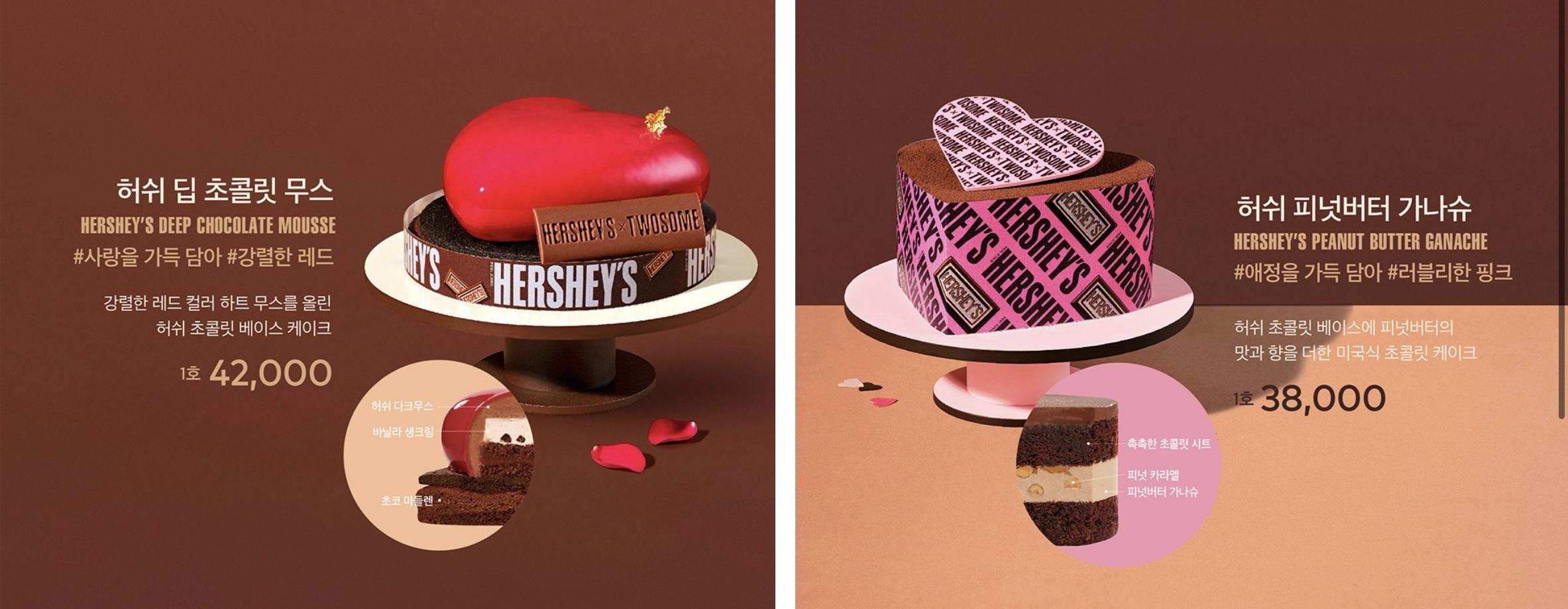 투썸플레이스가 밸런타인데이를 위해 허쉬 초콜릿과 협업하여 새로운 맛의 케이크 신제품을 선보였습니다.