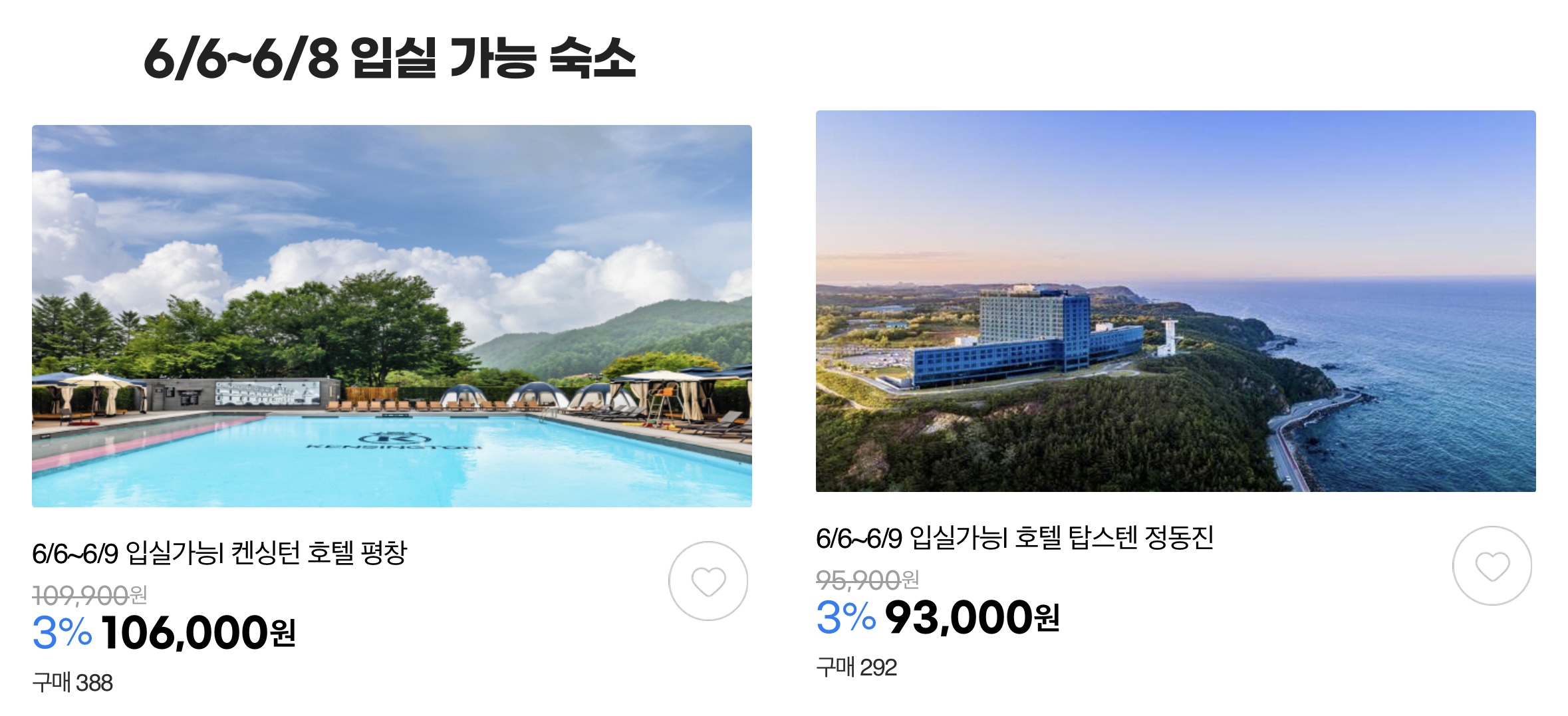 문화체육관광부와 한국관광공사가 지역관광 활성화를 위해 진행하는 ‘6월 여행 가는 날’ 캠페인의 숙박 할인 프로모션입니다. 국내 주요 지역의 숙박시설을 할인받고 예약할 수 있는데 6월 3일 (월) ~ 6월 30일 (일)까지 이용가능합니다. (입실 가능기간: 6월 3일(월)~7월 14일(일)