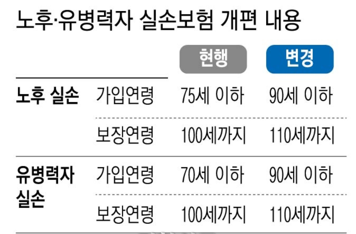 2025년 4월부터 노후, 유병력자 실손보험의 가입 연령이 90세로 확대되고, 보장 연령도 110세로 늘어날 예정입니다. 현재까지의 가입 연령은 70세(유병력자 실손보험)와 75세(노후 실손보험)로 운영되고 있었으며, 보장 연령은 100세까지였습니다.