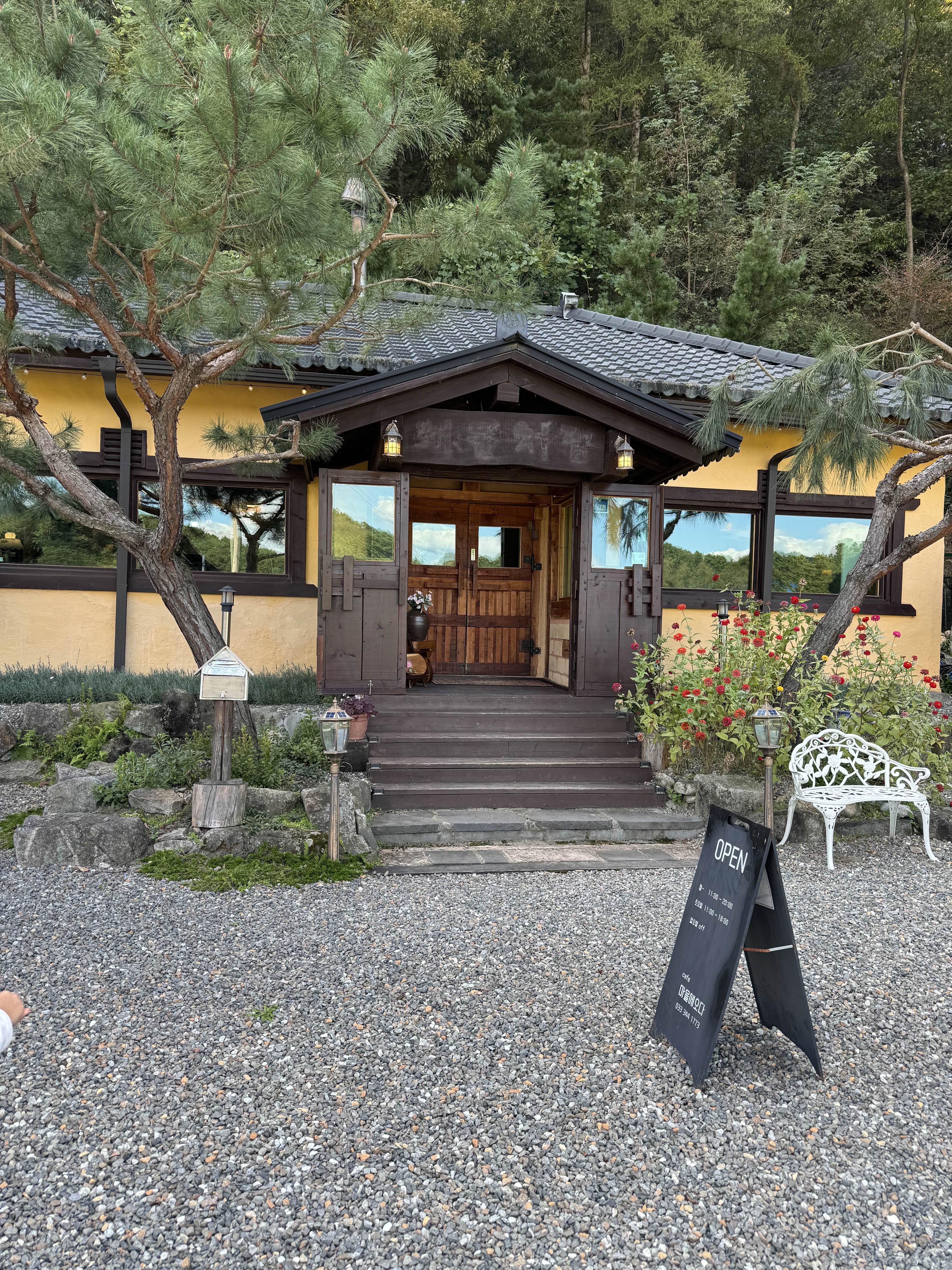 루지 체험 후 새말토종순대에서 식사를 마치고 나니 커피가 생각났습니다. 촌캉스 컨셉과도 잘 맞으면서 아름답고 고즈넉한 카페였던 여유롭게 커피와 디저트를 즐길